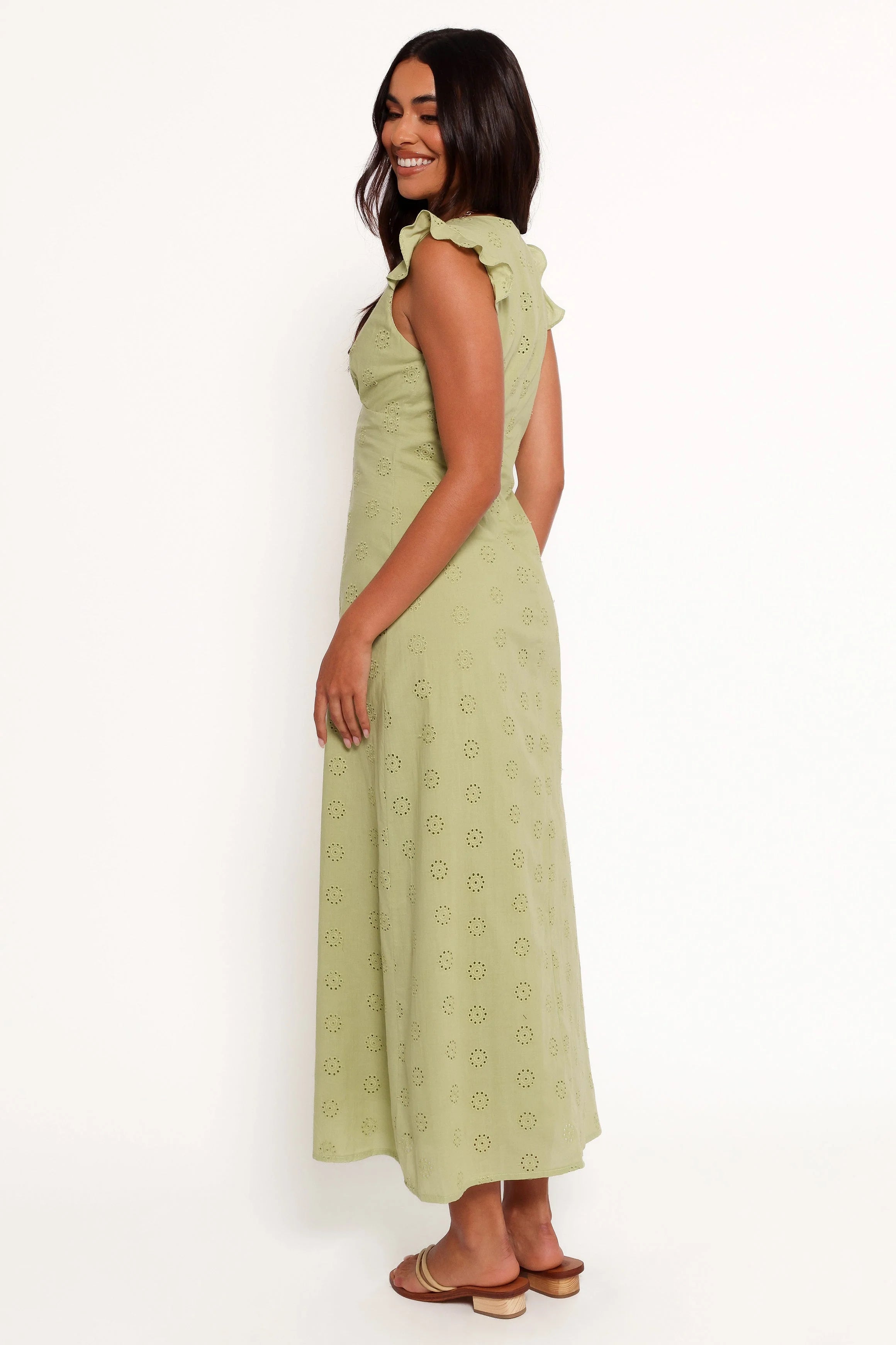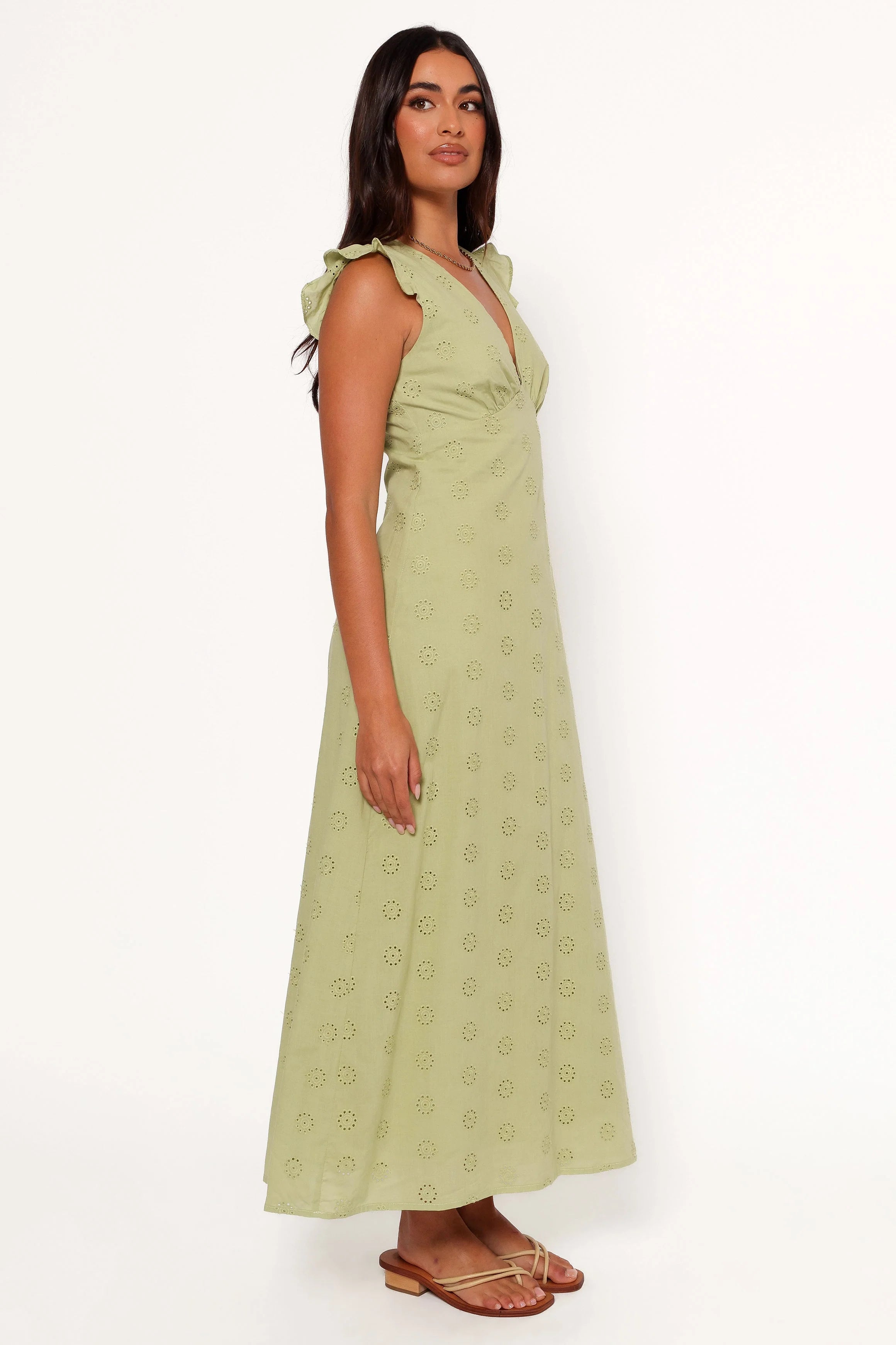DETAILS Step into elegance with our stunning maxi-length dress, designed to make a lasting impression. This gorgeous piece features a flattering V neckline and delicate short flutter sleeves that add a touch of whimsy to its sophisticated silhouette.
