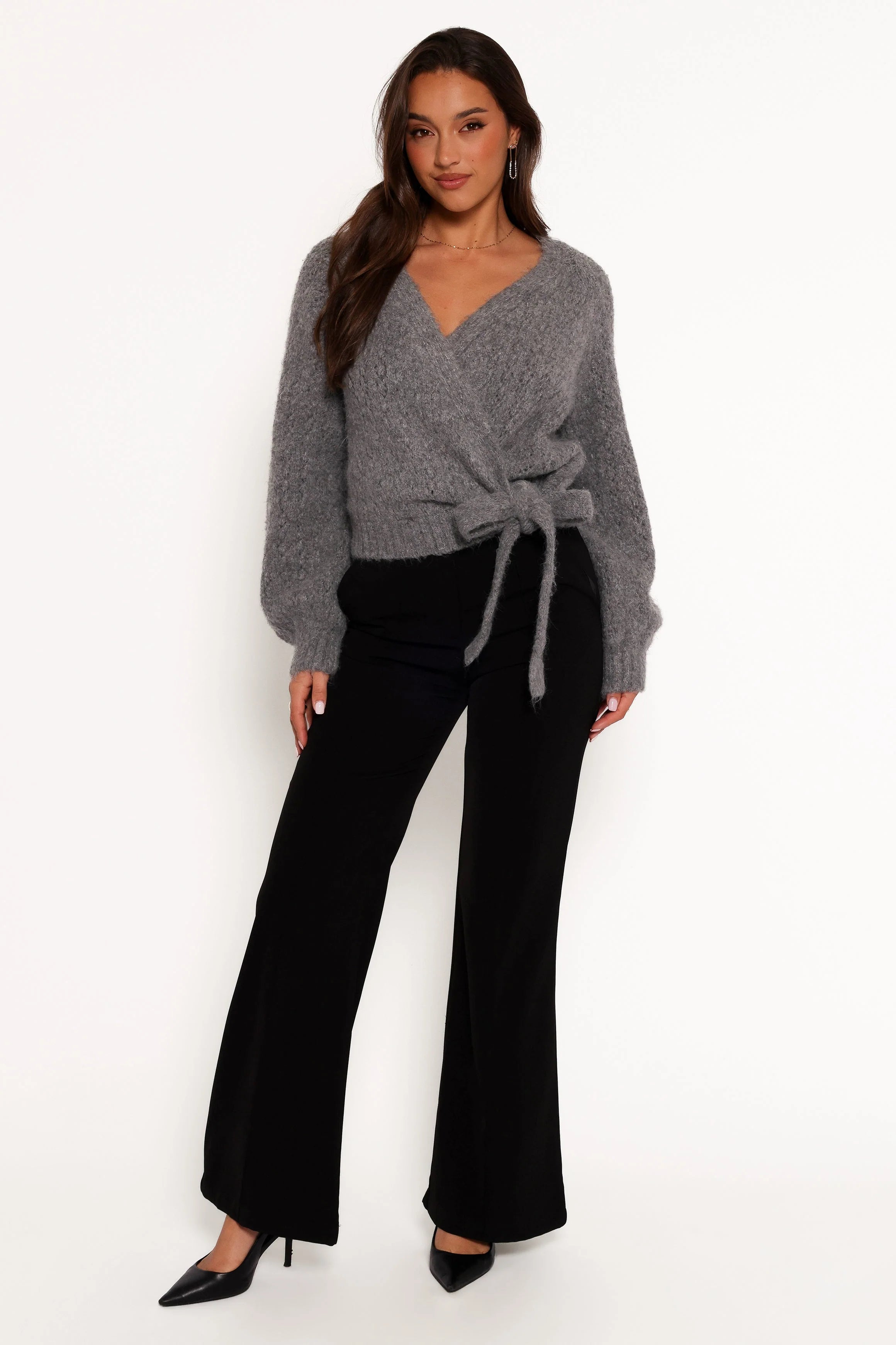 | DETAILS Imagine wrapping yourself in its soft knit fabric on a crisp fall day, feeling the gentle hug of the v neckline and the snug fit of the long sleeves with ribbed cuffs. The front wrap design adds a touch of sophistication, while the attached waist tie detail lets you cinch in your silhouette, creating a flattering, feminine shape.