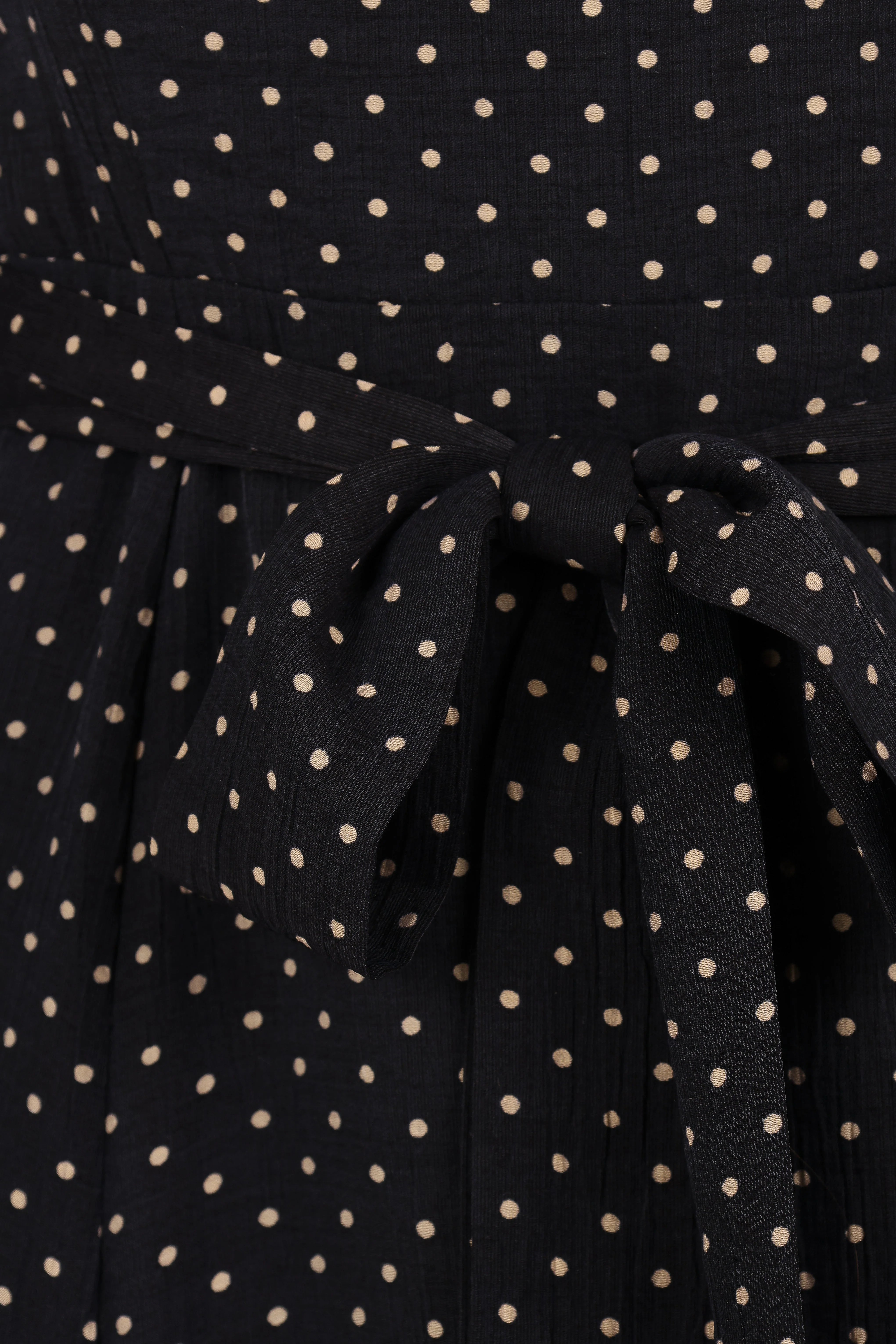 DETAILS This midi dress is a must-have for any fashion forward individual looking to make a statement with their style. The playful polka dot adds a touch of fun and charm, while the elegant silhouette exudes sophistication and class.