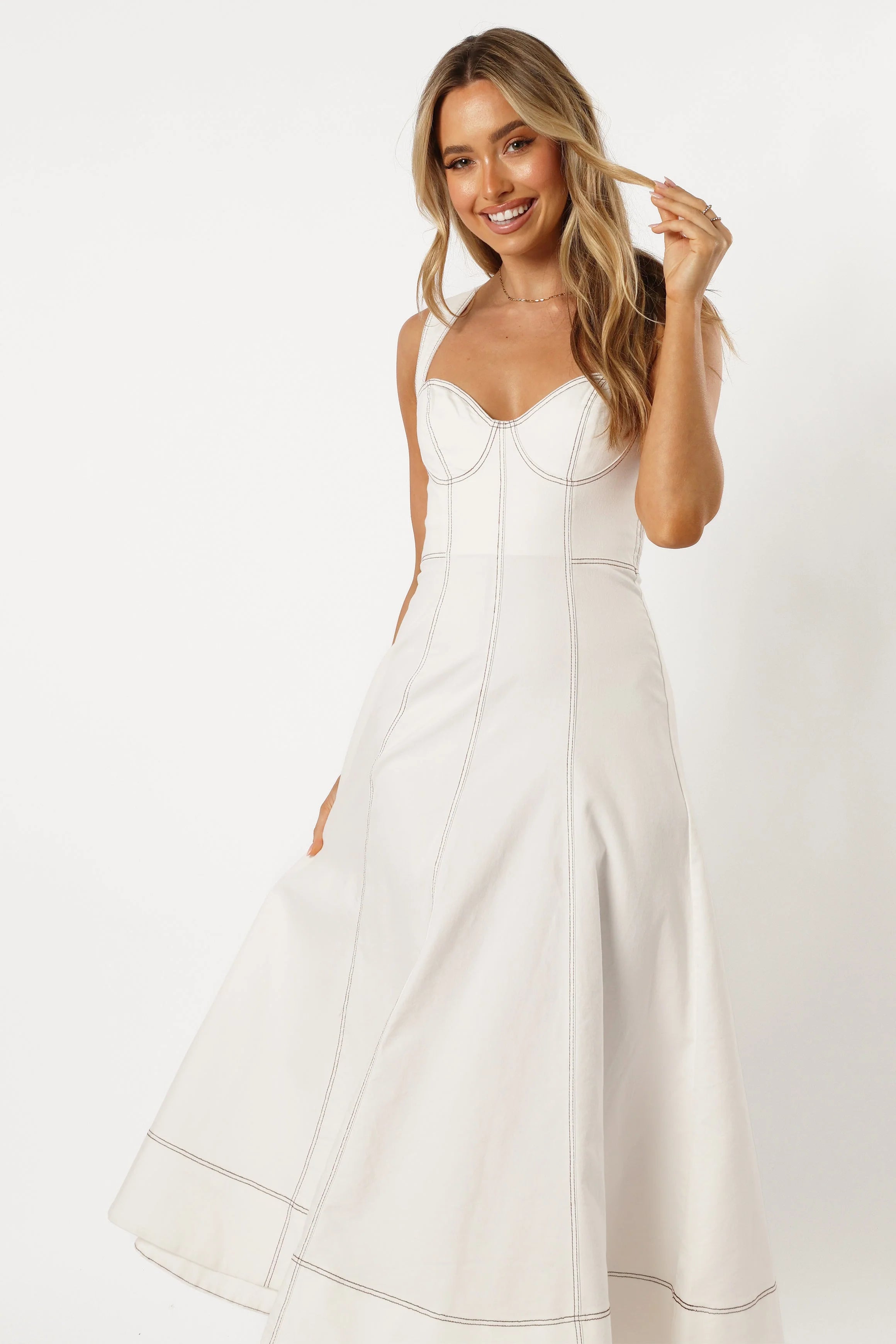 DETAILS This midi dress is the perfect addition to your spring wardrobe. The classic sweetheart neckline, adjustable straps and sleeveless design combine for a stylish yet comfortable look.