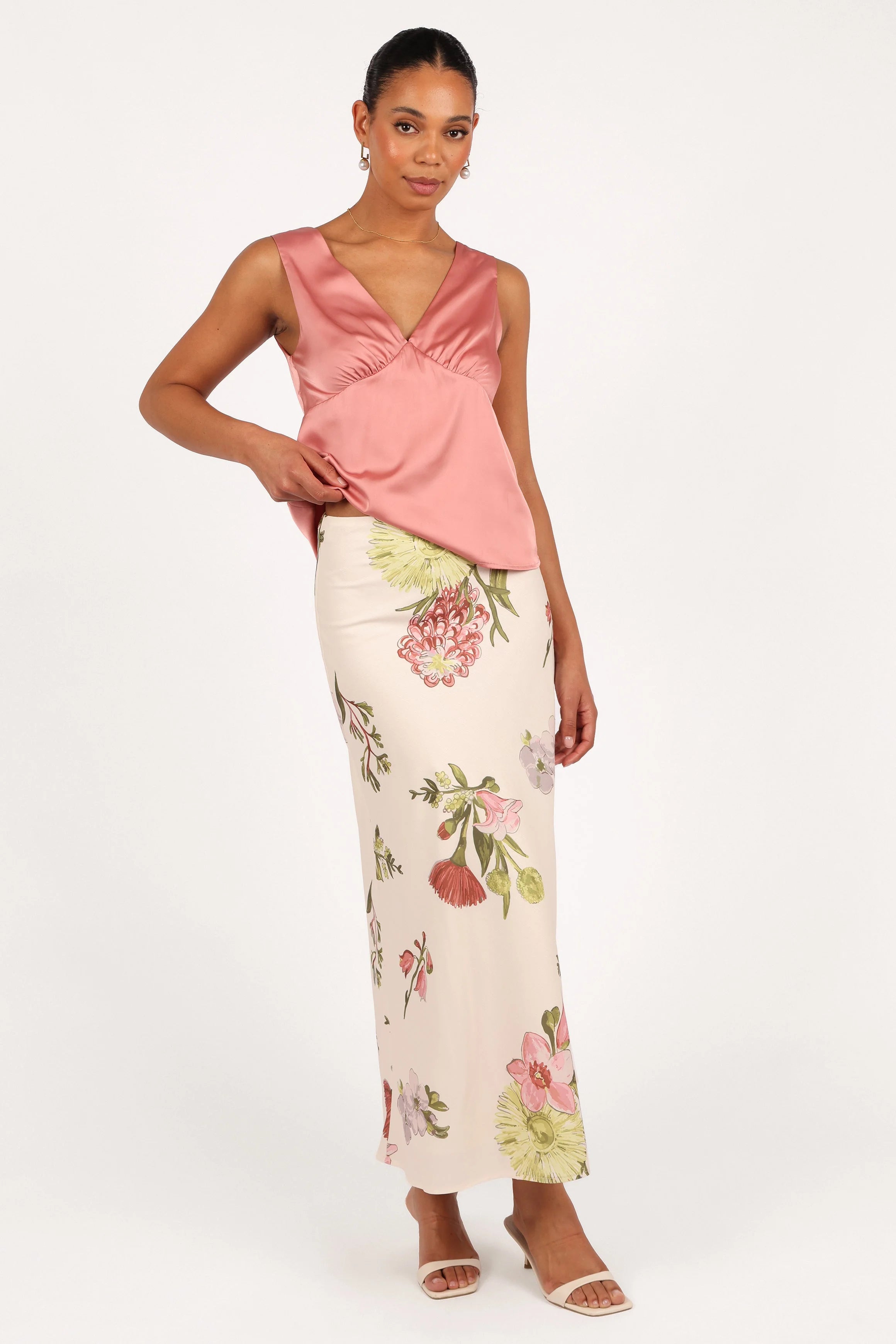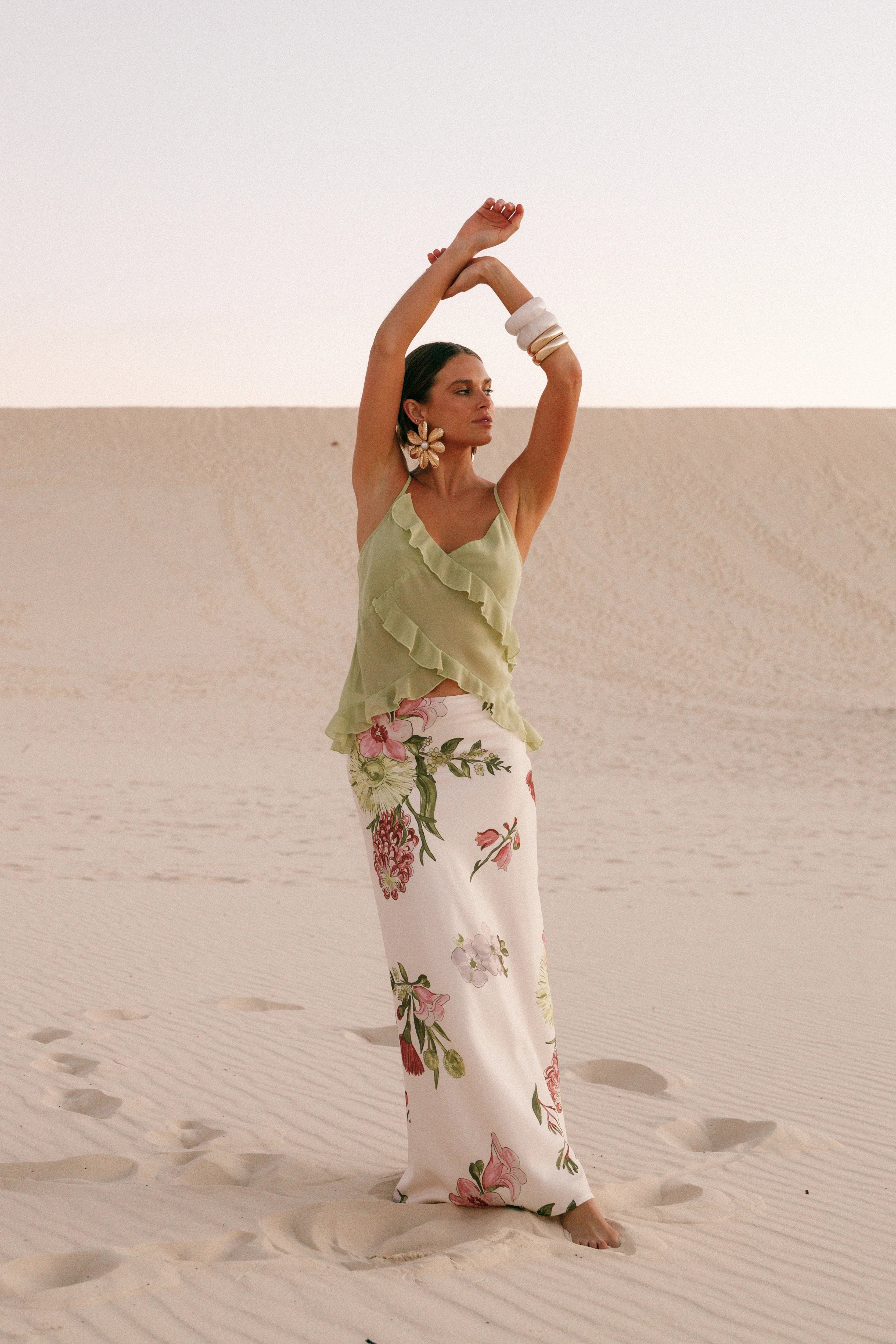 DETAILS Unleash your inner trendsetter with our high-waisted, a-line skirt! With its maxi length, it's perfect for those who crave both style and comfort. The beautiful floral print is the cherry on top.