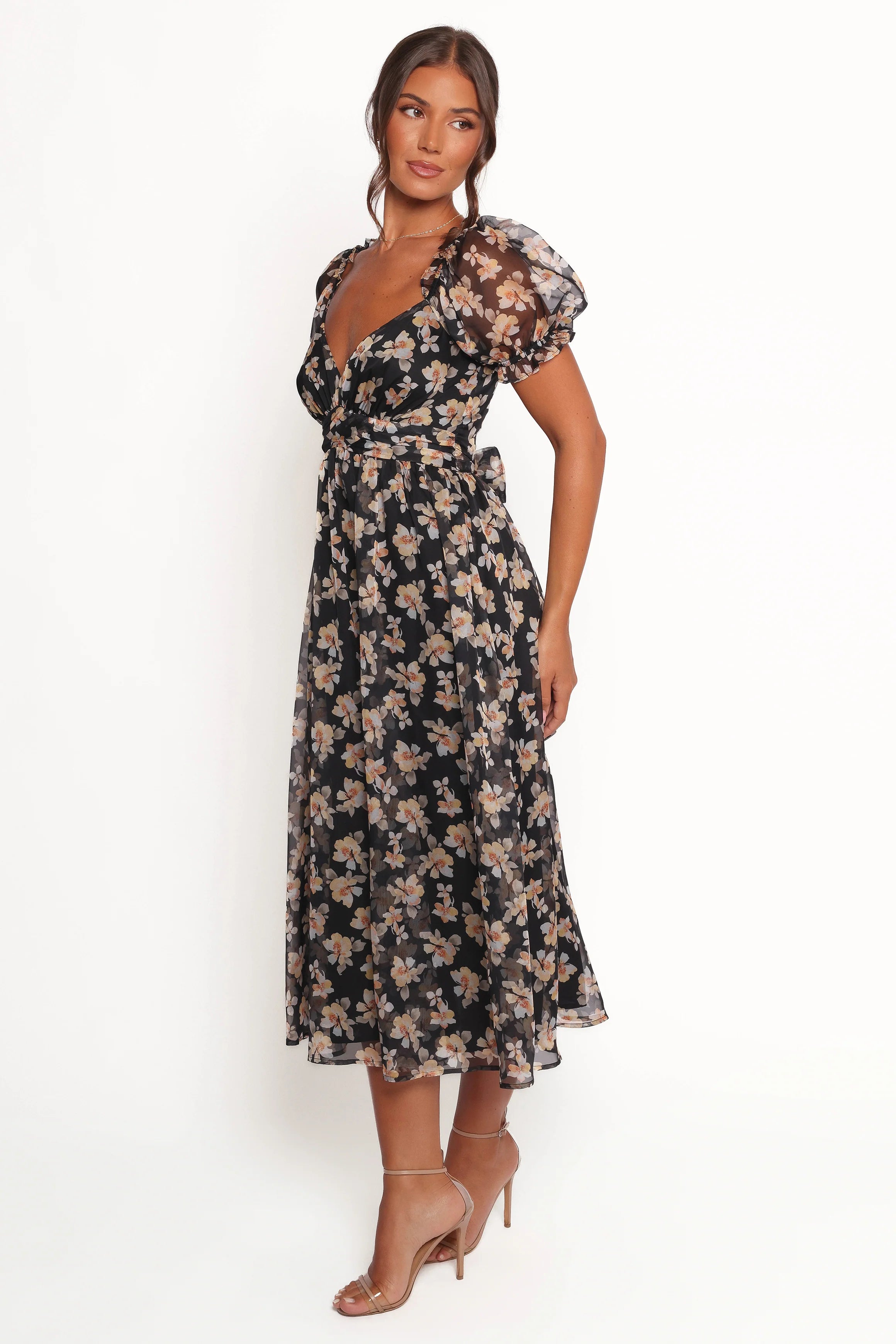 DETAILS Adorned with delicate frill details and a tie back bow that add a romantic feel to your look, this dress effortlessly combines timeless style with modern grace. Pair this dress with strappy sandals for a daytime garden party or elevate it with heels for a night out.