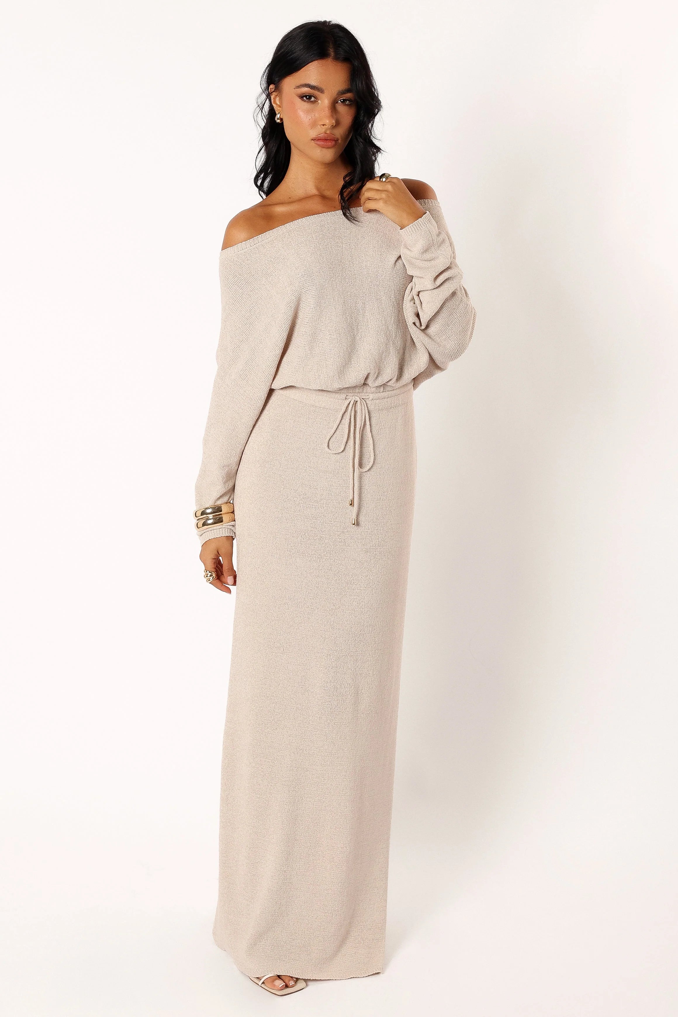 DETAILS The dress features a round neckline, long sleeves and an elasticised waistband with drawstring, giving you the perfect fit as well as maximum comfort. There's even a side split for added movement and style.
