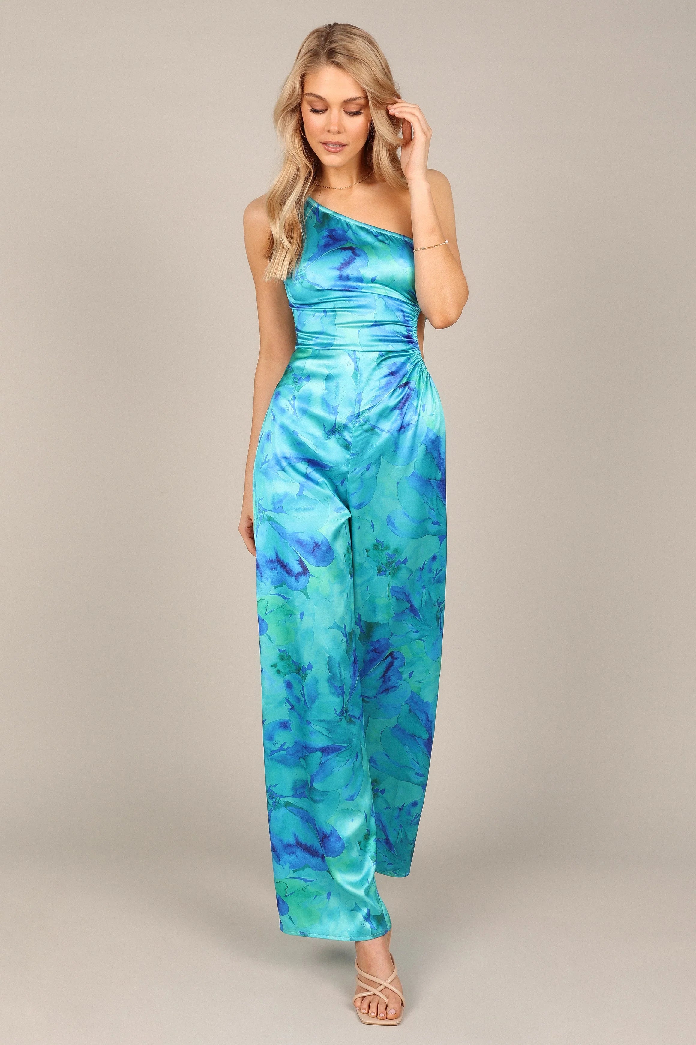 DETAILS Let the party begin! Make a fashion statement in this flirty one shoulder jumpsuit. The wide leg style is perfect for dancing and adding a little drama to your look. With an asymmetrical neckline, side zip and sexy side cut out feature, you'll be sure to turn heads all night long. Get ready to party with this chic jumpsuit!
