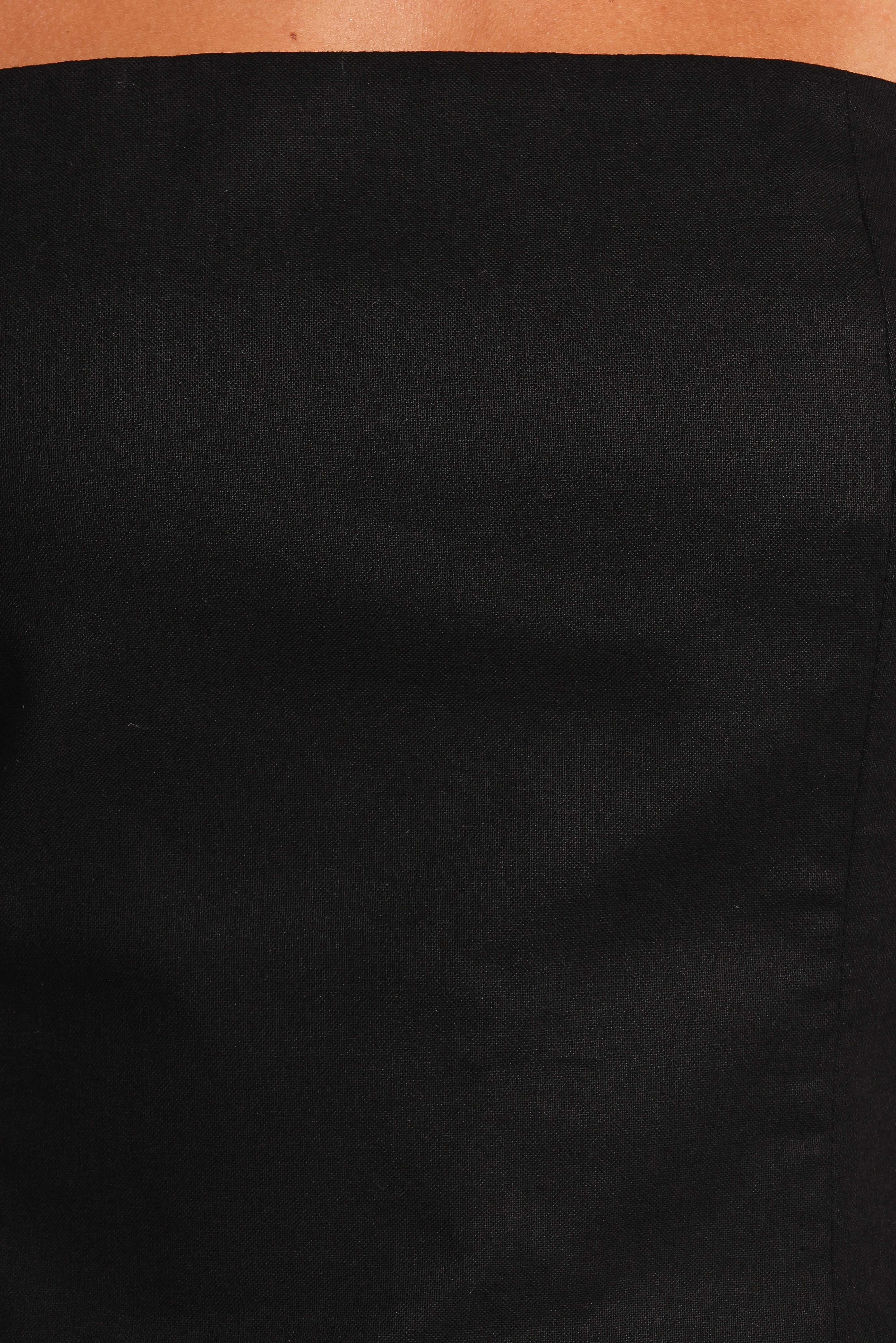 DETAILS Turn heads with the Giovana Strapless Top in classic black. Featuring a sleek strapless design, straight neckline, and an invisible back zip with a secure hook-and-eye clasp, it ensures effortless elegance. The subtle side split adds just the right amount of edge for a modern, sophisticated vibe.