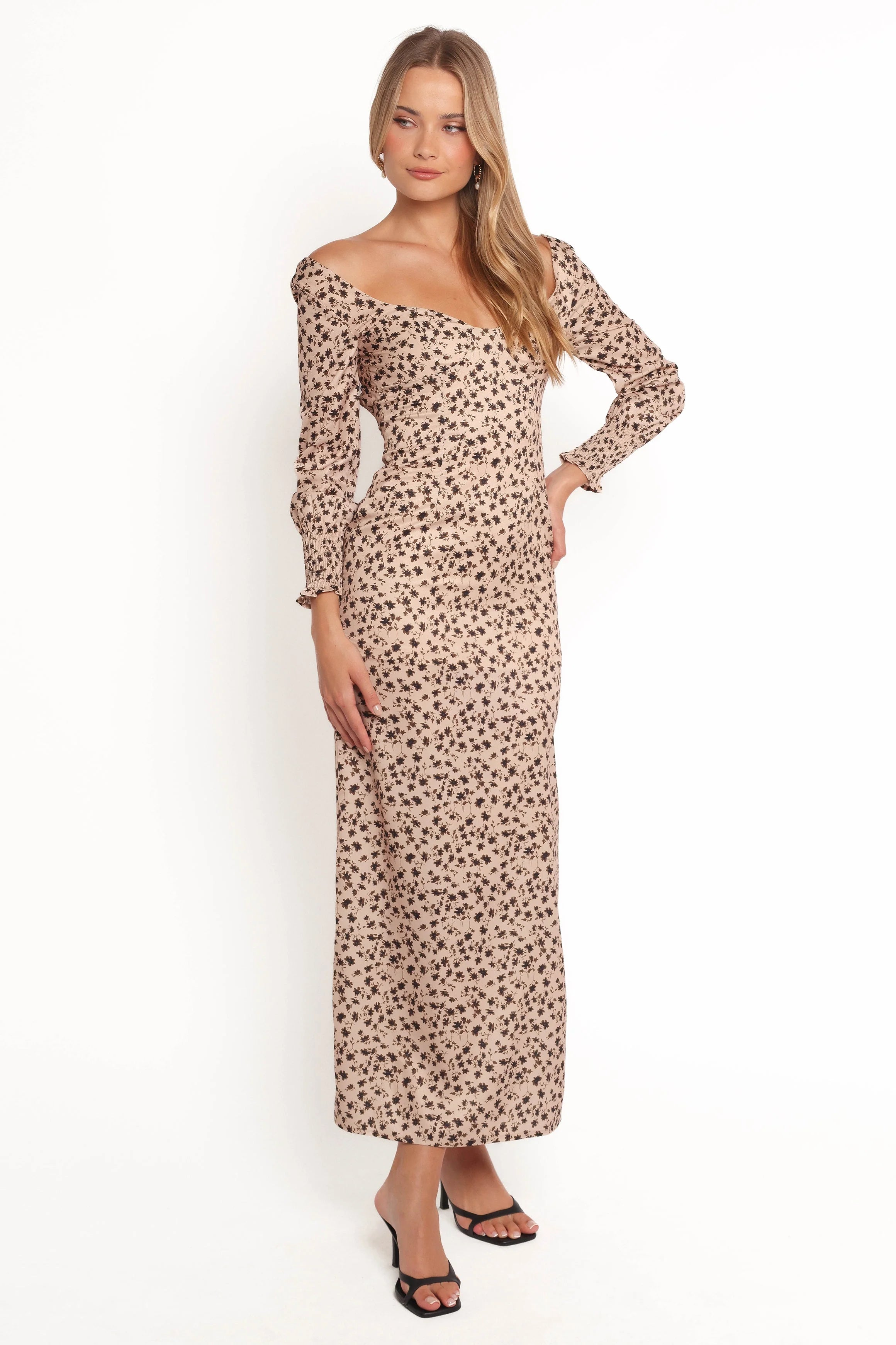 DETAILS Step into timeless elegance with the Gisella Long Sleeve Midi in Brown Floral. This captivating dress beautifully blends classic charm with modern style, making it perfect for any occasion.