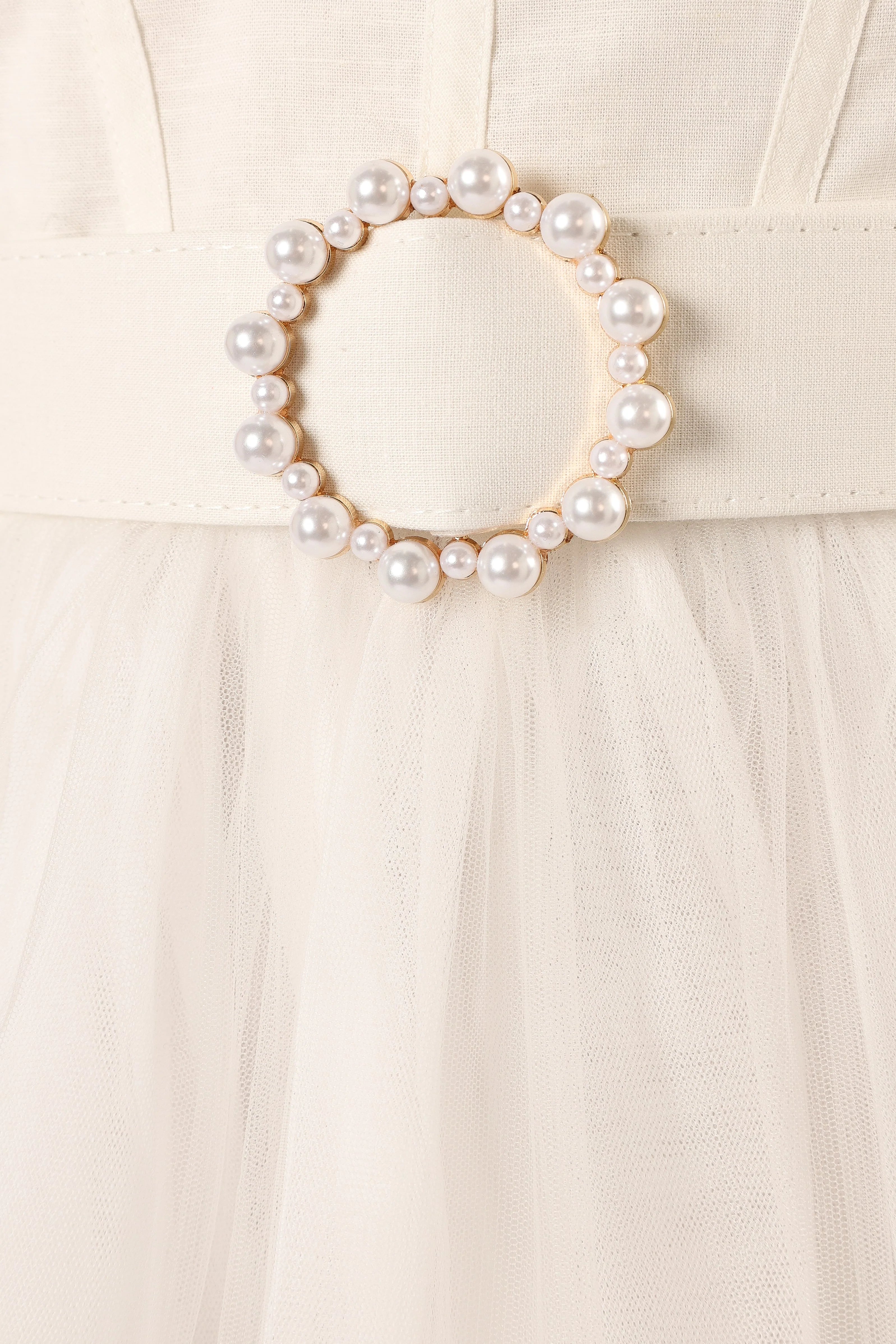 | DETAILS Step into effortless elegance with the Glebe Mini Dress in pristine White. This enchanting ensemble is designed to captivate and flatter from every angle, starting with the charming sweetheart neckline and the adjustable straps for a customizable fit. The embroidered tulle skirt design imparts an air of romance, accented by a lace trim hemline that dances gracefully above the knees.