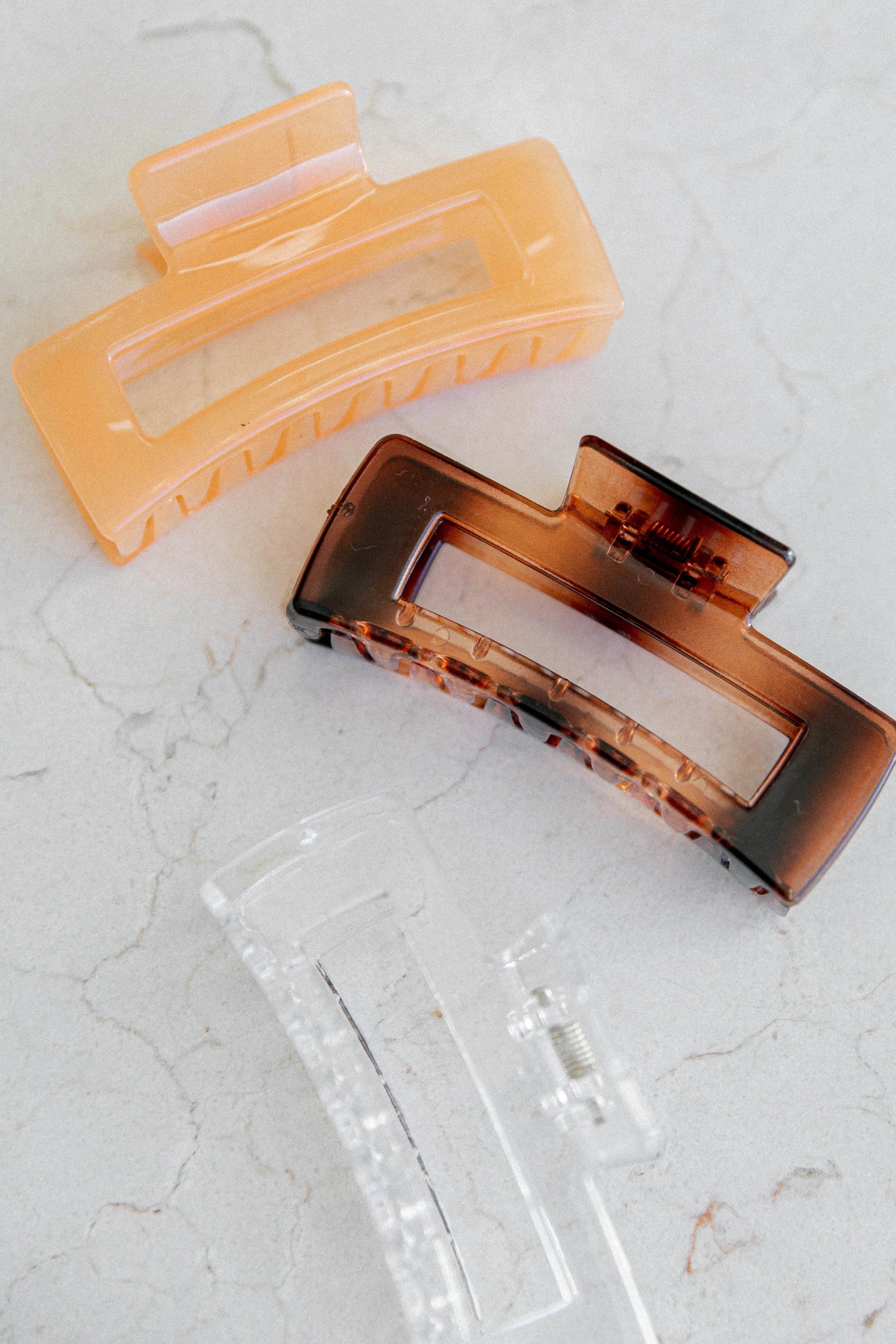 This set of three claw clip designs is the perfect way to add a little bit of fun and feminine style to any look! The tonal colours blend in easily with your hair, while still looking stylish.Thanks for subscribing!