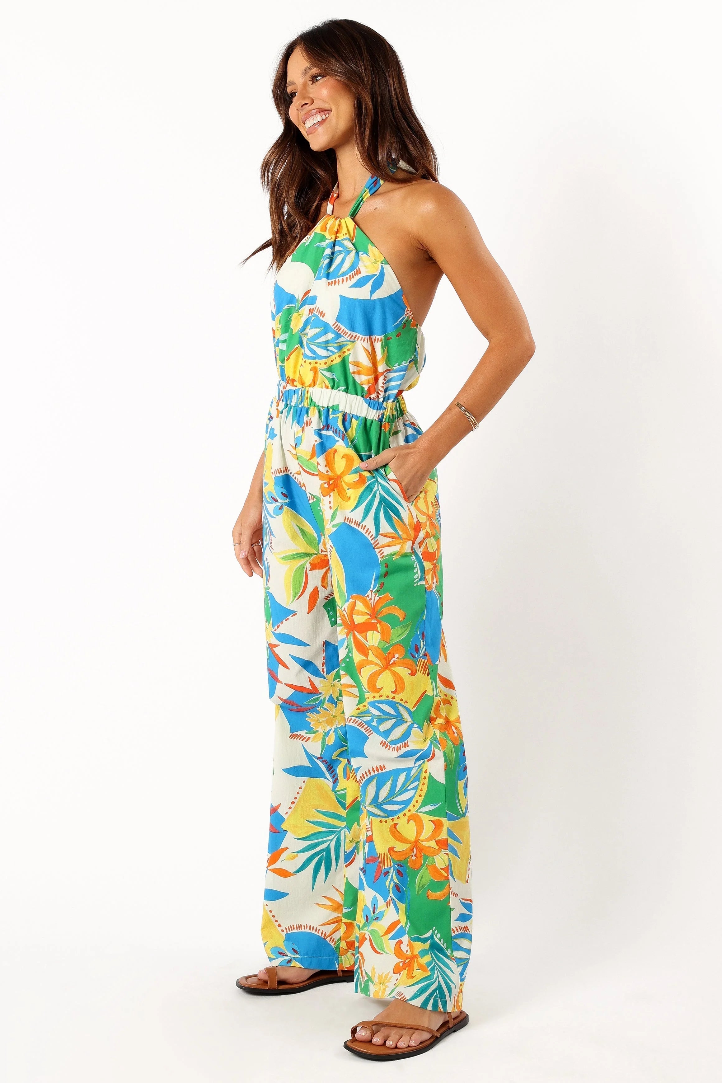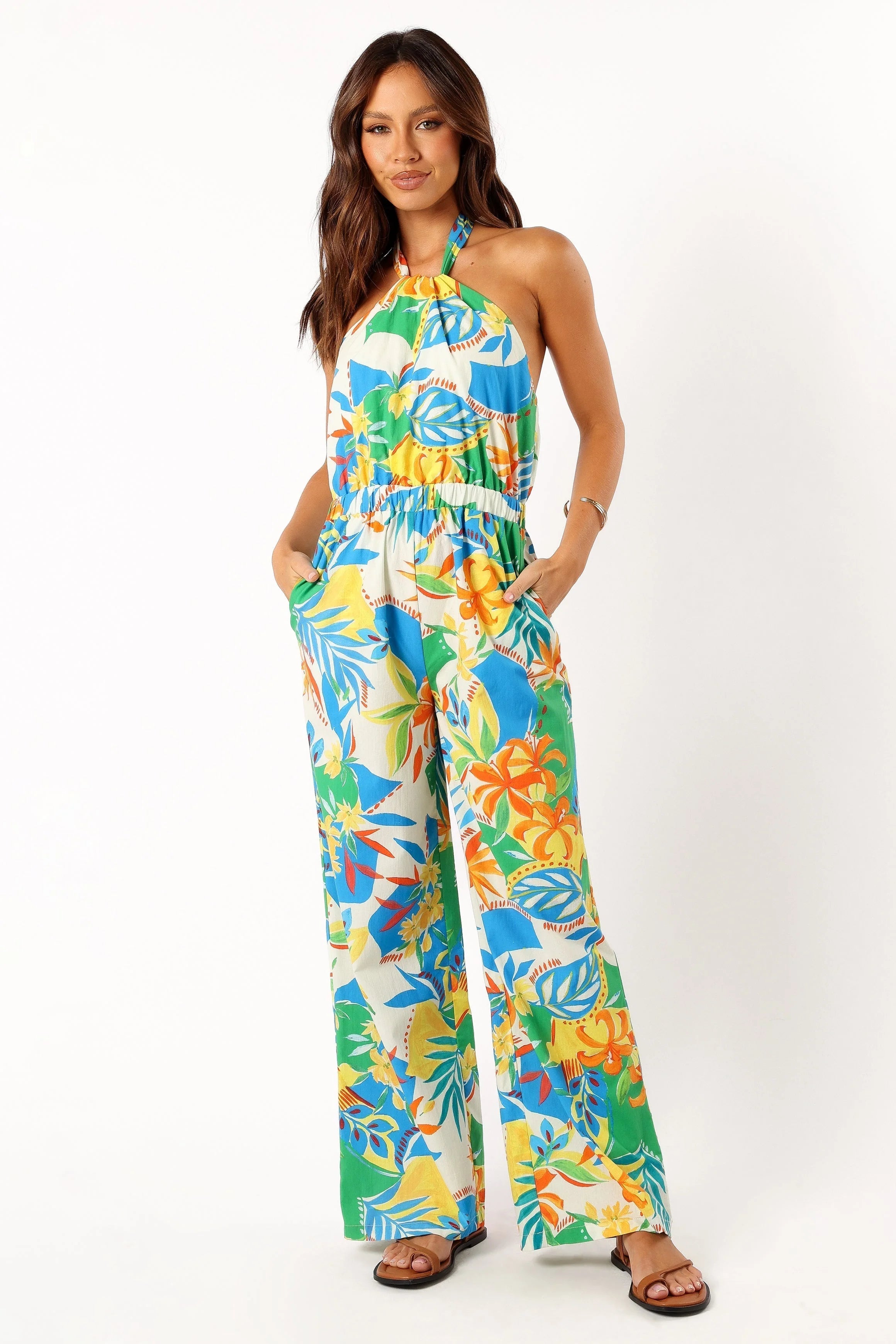 DETAILS Step into the room and steal the show with our Harriet Halter Jumpsuit in the vibrant Malta Print. This wide-leg style jumpsuit, featuring a flirty halter neck with a chic tie closure, is all about combining comfort with serious style.