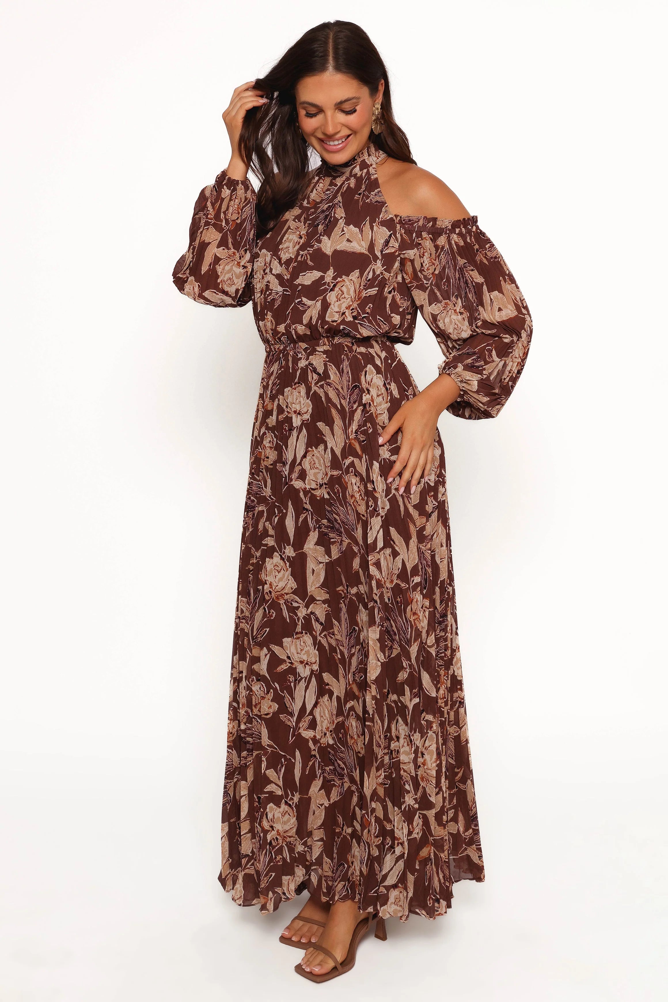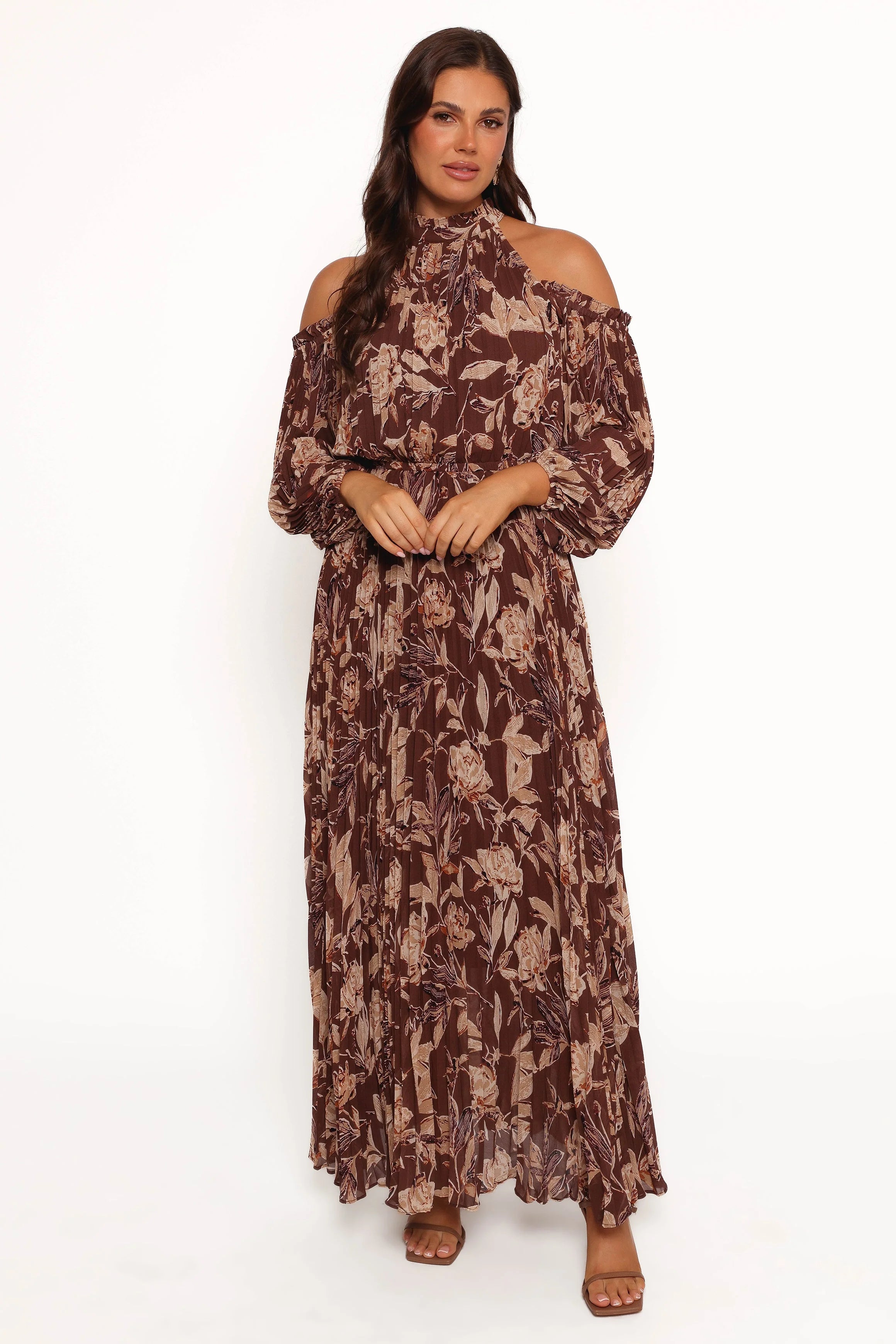 | DETAILS Show your style in this maxi length dress! This beautiful piece features a high neckline, long sleeves with elasticised cuff and an exposed off shoulder design. The elasticised waistband creates the perfect fit and provides you with extra comfort.