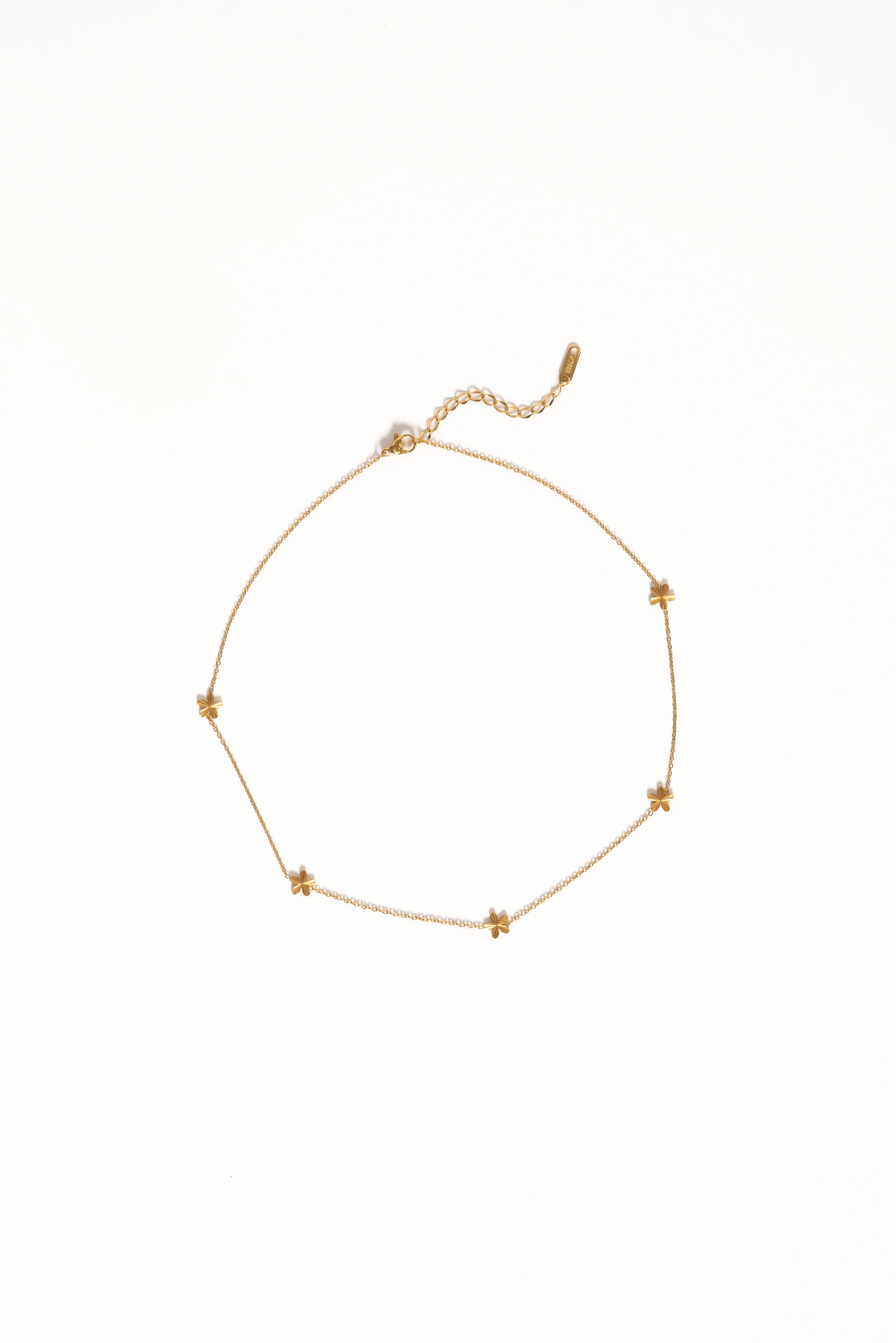 DETAILS Add a touch of effortless elegance to your look with the Imogen Necklace in Gold. Featuring a delicate gold chain and a dainty flower pendant, this necklace strikes the perfect balance between timeless and on-trend.