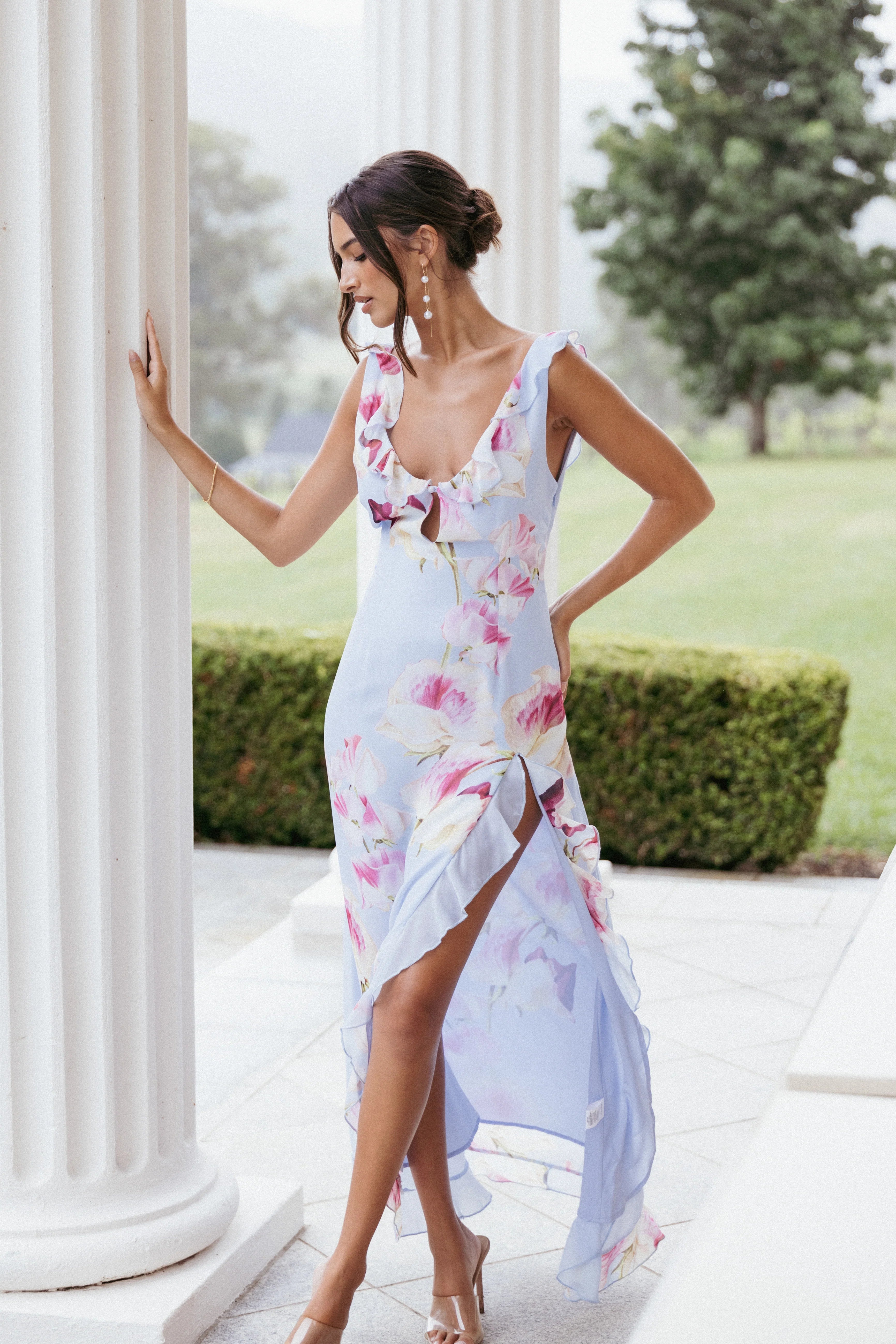 DETAILS Step into effortless elegance with the Inayah Maxi Dress in Cadence Print, a true wardrobe statement piece for any season. This stunning maxi dress features a soft floral print that feels timeless yet contemporary, while the flowing silhouette offers both comfort and grace.