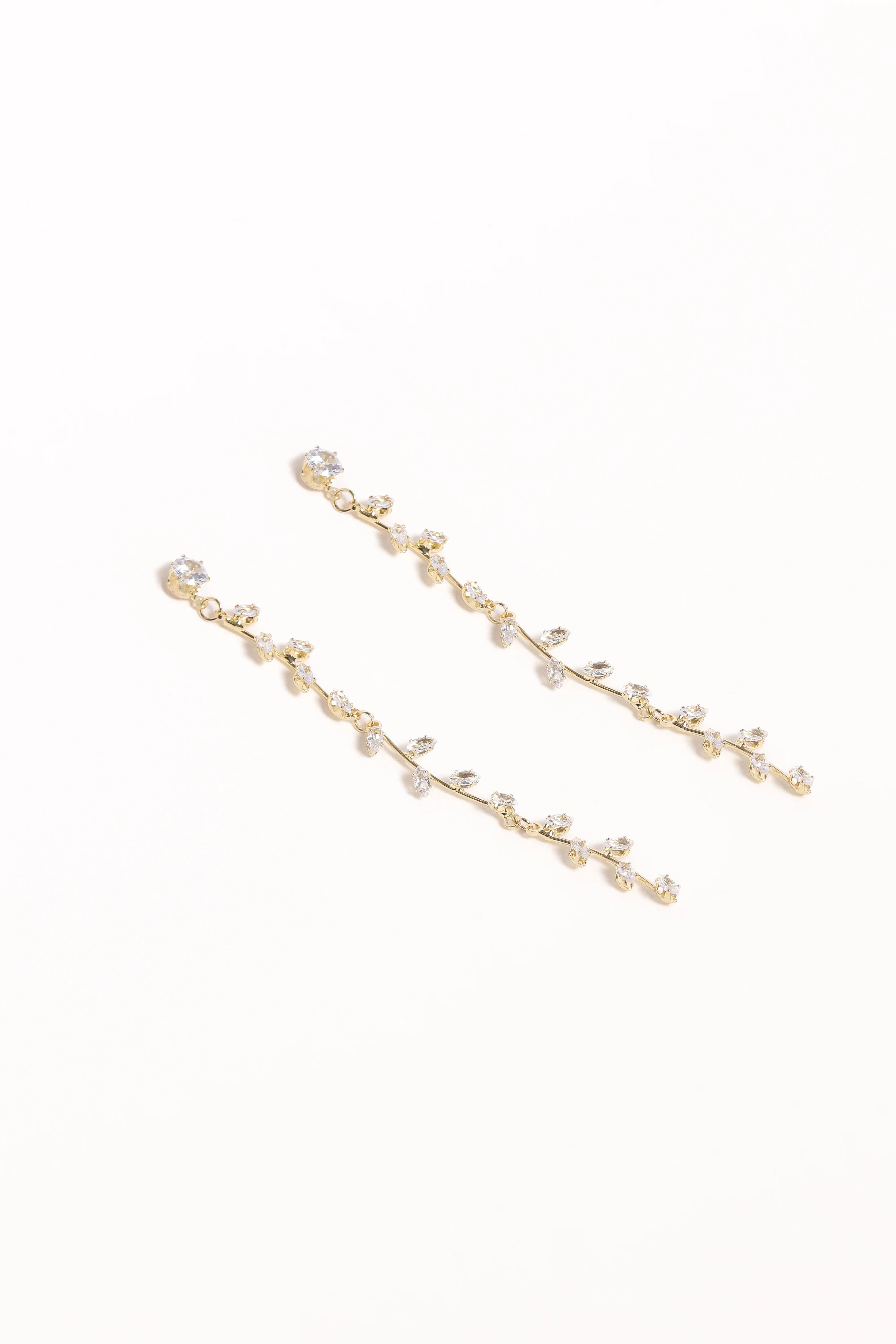 | DETAILS Elevate your everyday style with the Indira Earrings in Gold, a perfect blend of elegance and modern charm. Featuring a sophisticated drop design adorned with sparkling crystal embellishments, these earrings catch the light beautifully with every movement.