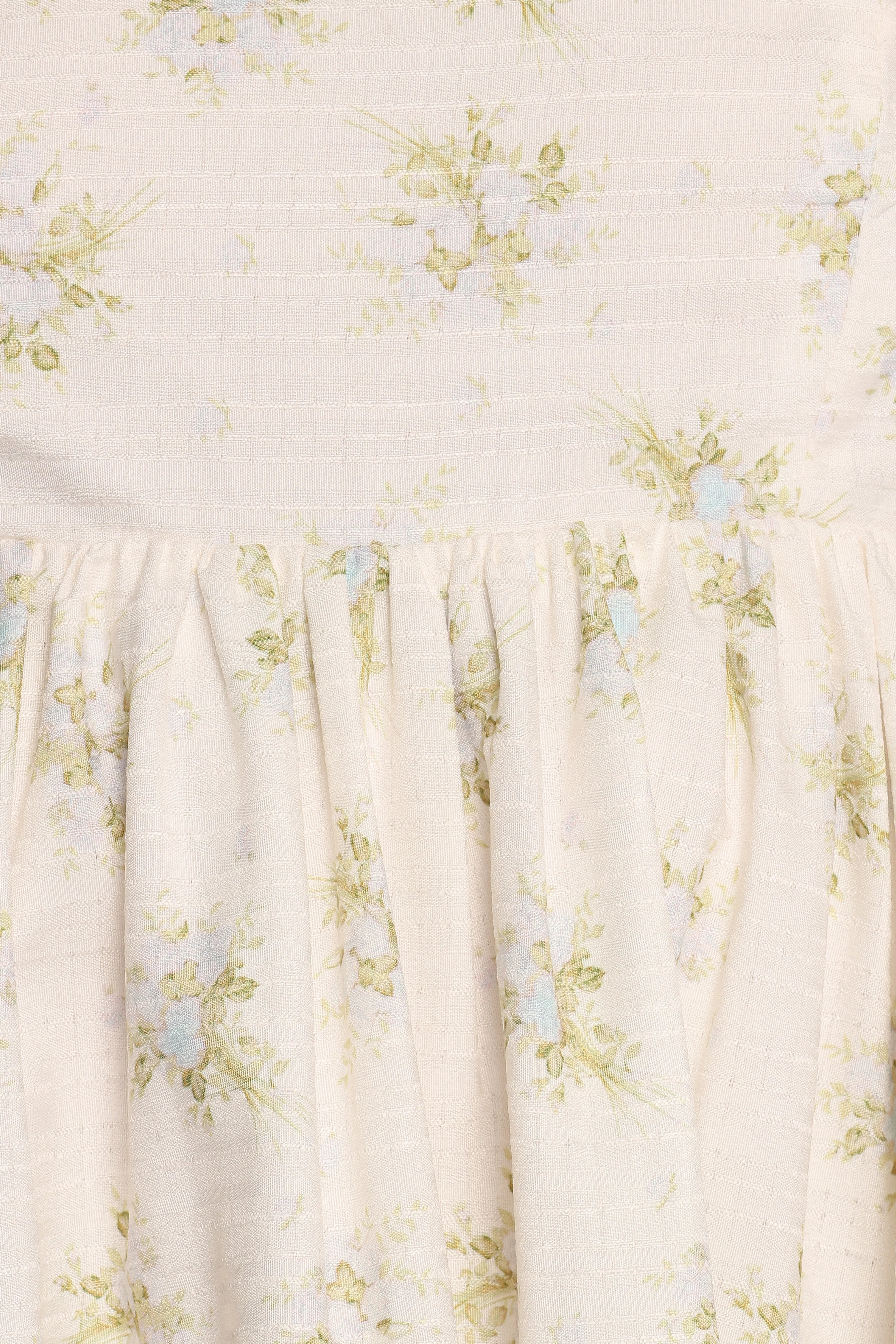 DETAILS Step into effortless elegance with the Indira Mini Dress in Ivory Blue Floral. Featuring a chic square neckline and thin adjustable straps, this dress is designed to fit like a dream while letting you move with ease.