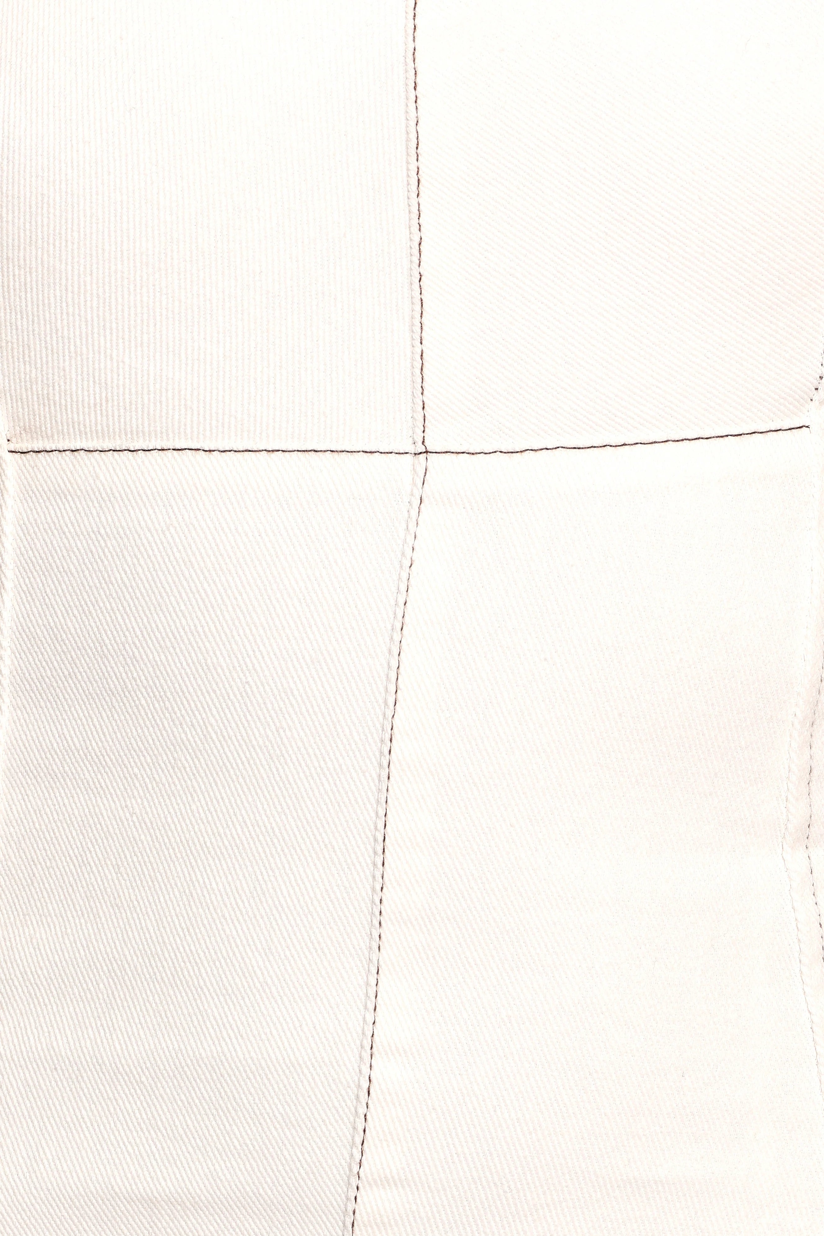 DETAILS Elevate your wardrobe with the Isley Mini Dress in white denim, a modern twist on a timeless classic. Designed with a sleek square neckline and structured fit, this mini dress features bold brown contrast stitching that adds a touch of vintage-inspired charm.