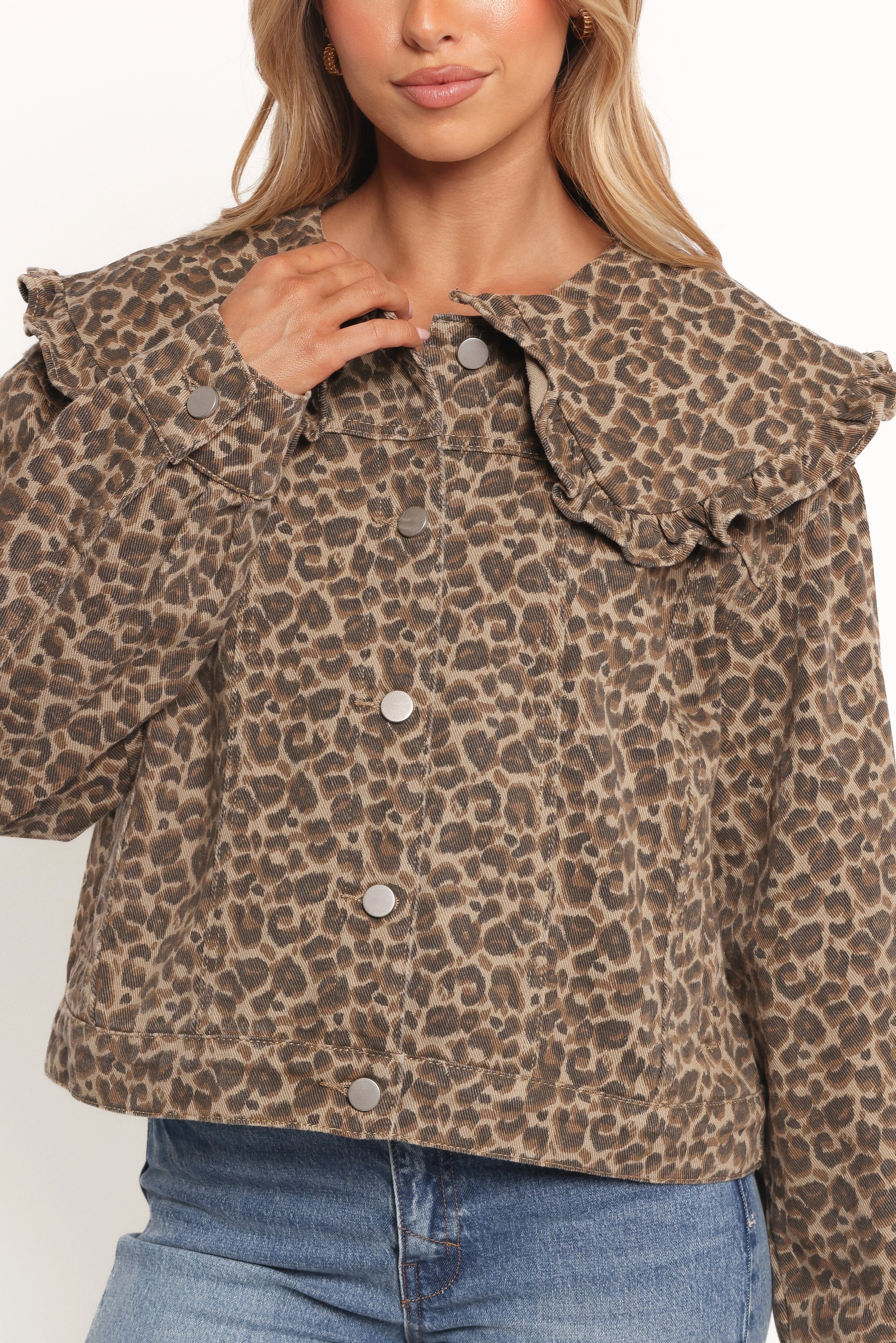 | DETAILS Unleash your inner fashionista with the Jaelle Leopard Print Jacket in Leopard. This statement piece, featuring a large, ruffle-detailed collar, is designed to turn heads and elevate any outfit. The long sleeves and functional buttons offer versatility and comfort, while the thoughtfully placed pockets add practicality without sacrificing style.