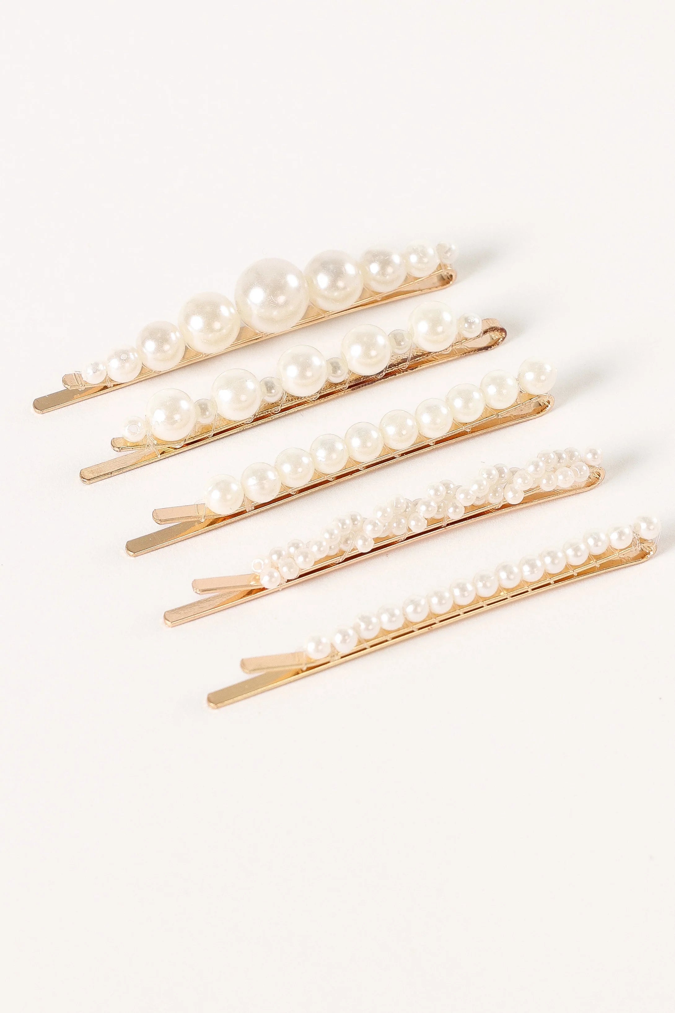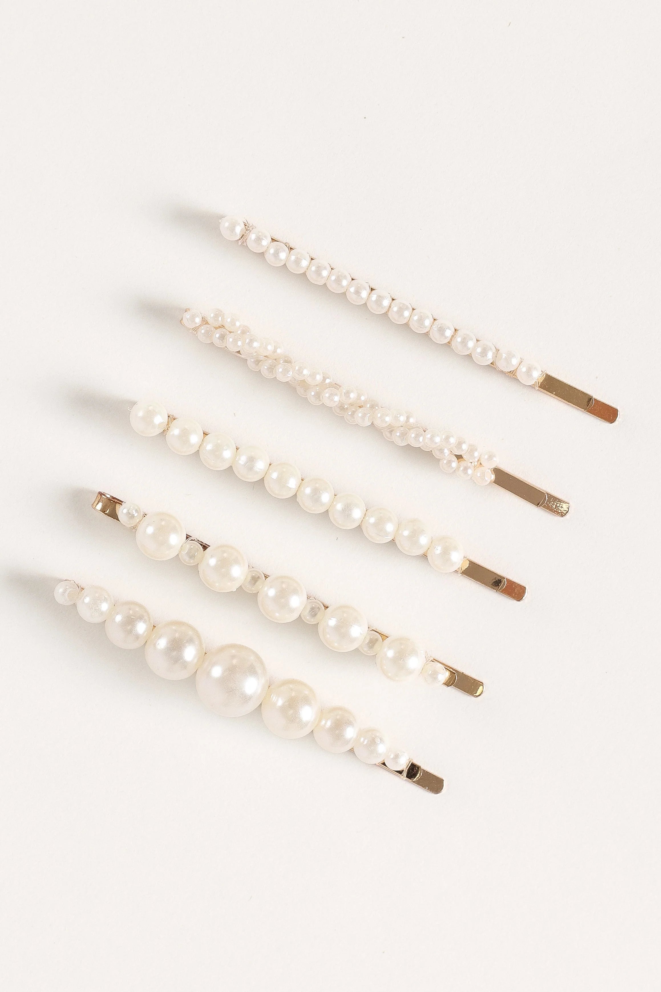 DETAILS Unleash your inner fashionista with our Joelle Hair Pins - Pearl edition! This set of 5 faux pearl-embellished clips adds a dash of elegance to any hairstyle.