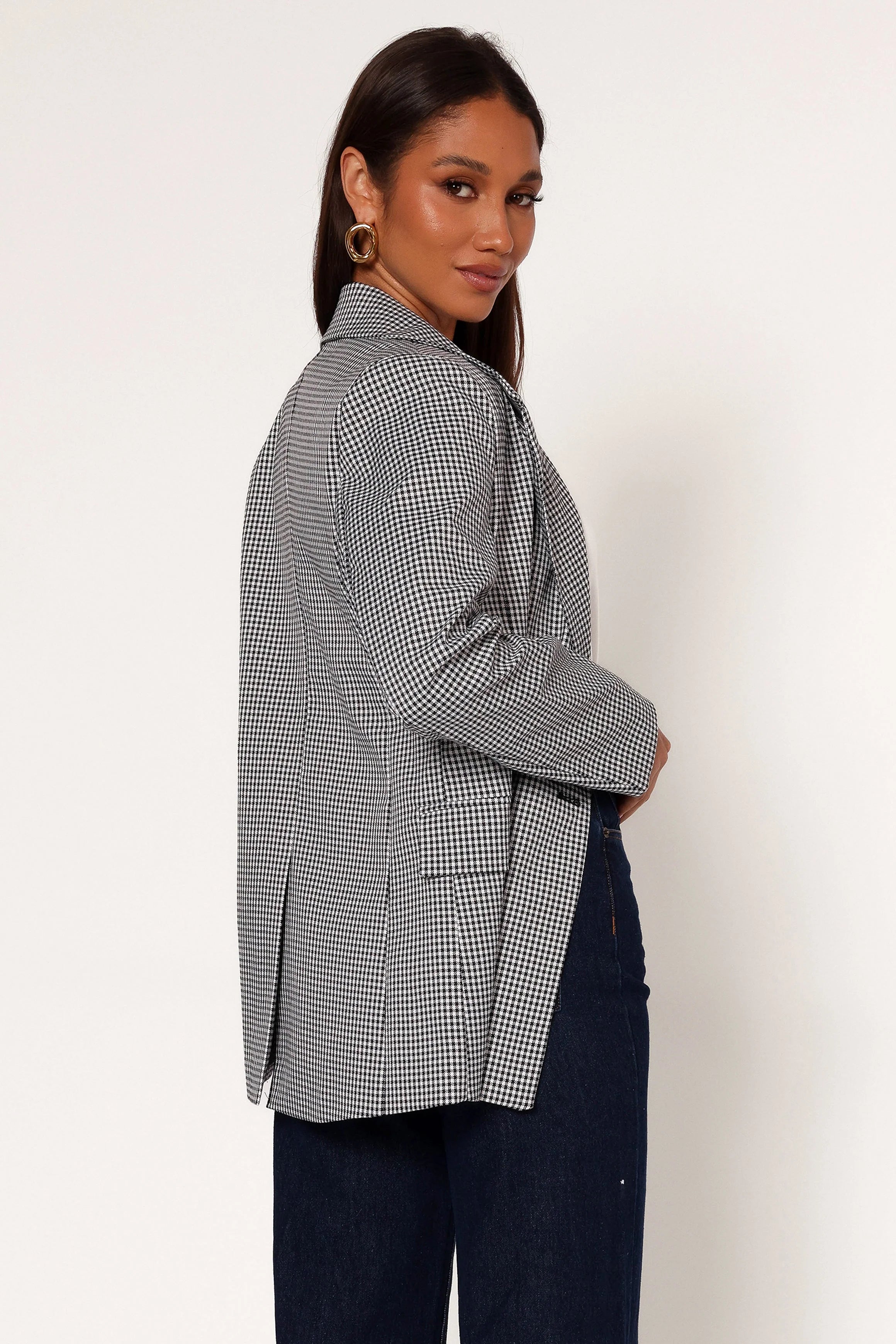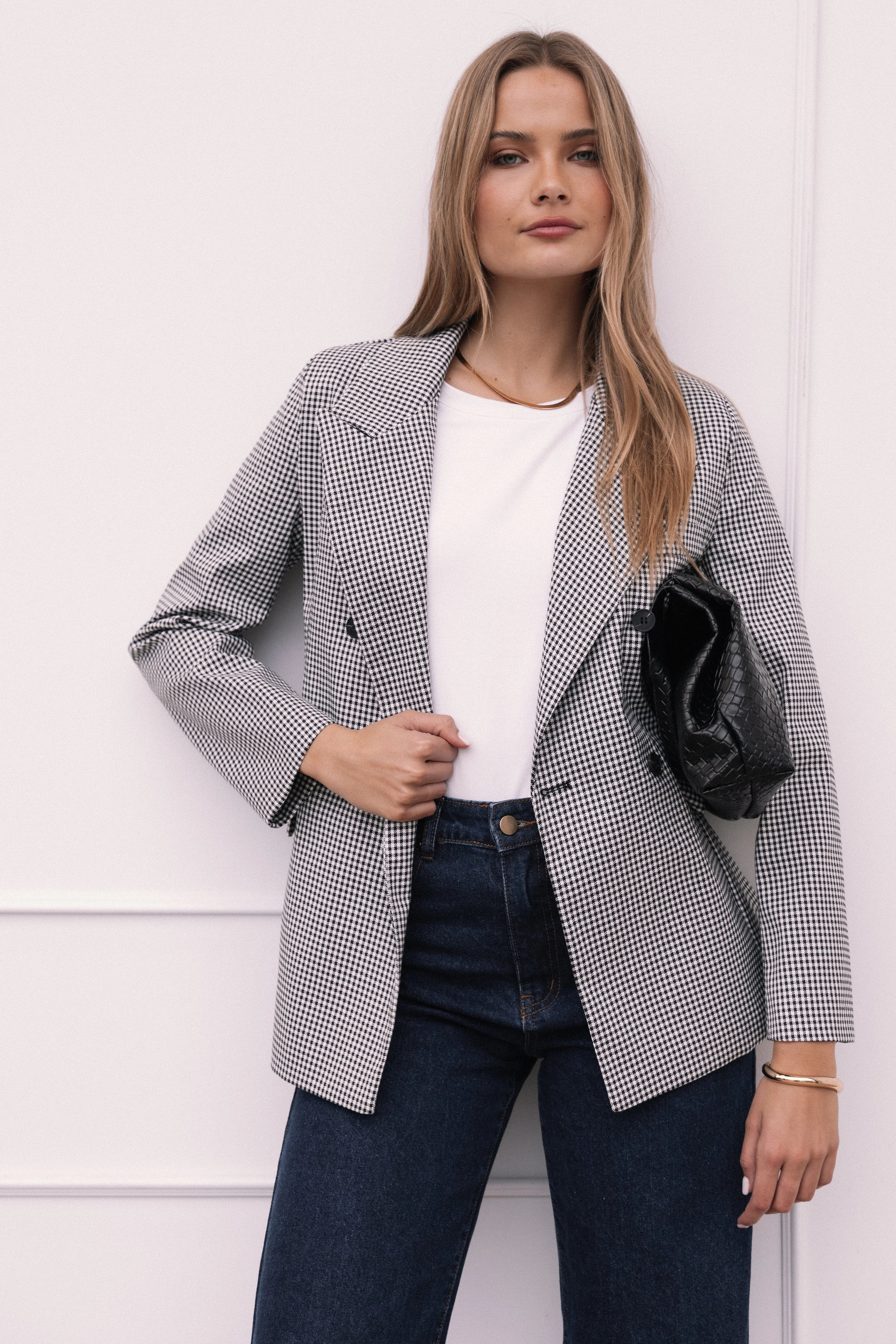 DETAILS This blazer is a must-have for any fashionista. Featuring an oversized style and double breasted design, this blazer has all the classic elements you're looking for. If you are in between sizes, we do suggest selecting the size up for a more relaxed fit.