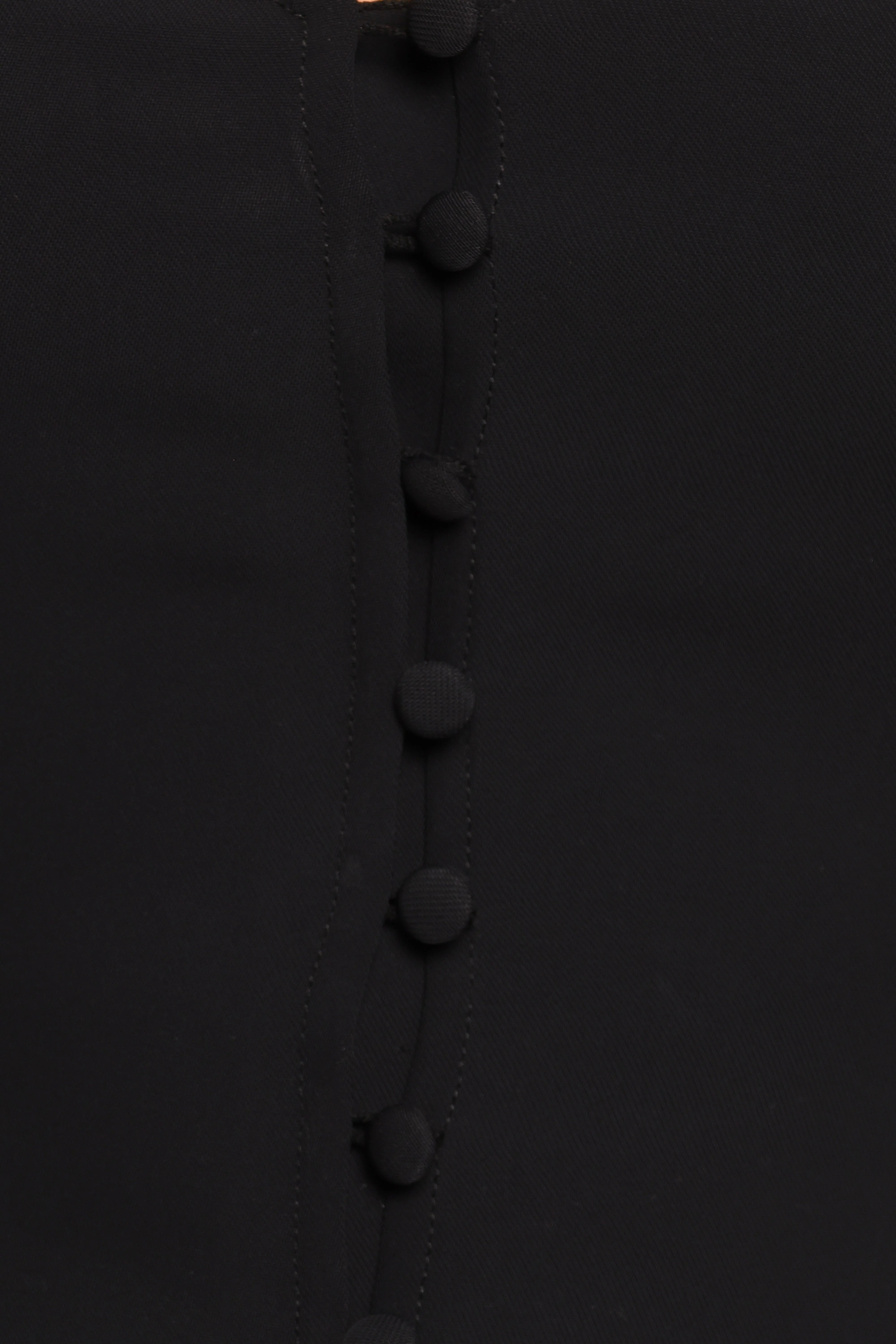 DETAILS Step into effortless elegance with the Kameran Top in classic black. Featuring a chic v-neckline and short sleeves with elasticised cuffs, this top is all about comfort without compromising on style. The functional buttons down the front add a polished touch, while the pleated peplum hemline creates a flattering silhouette.