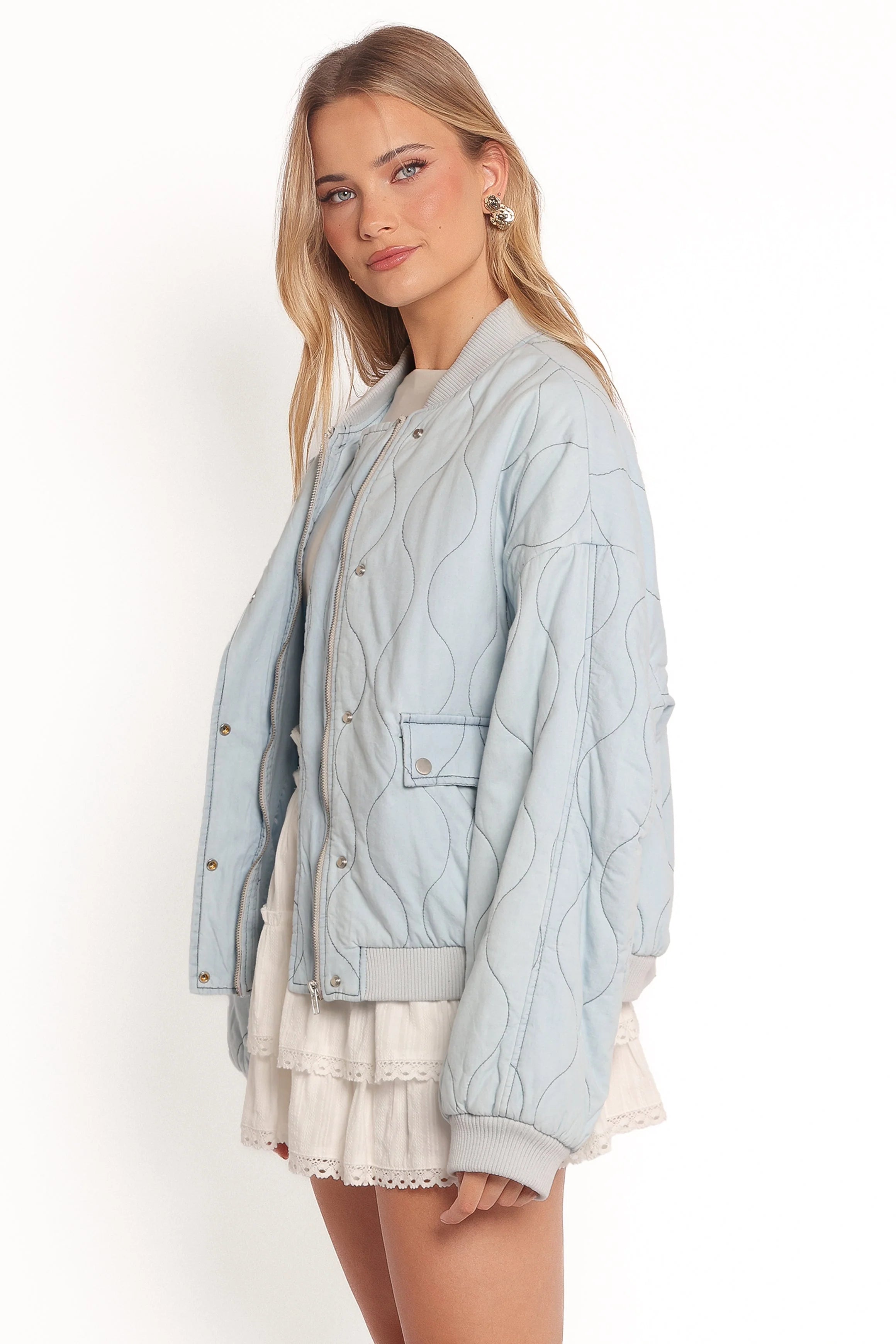 | DETAILS Elevate your outerwear game with the Keah Quilted Jacket in Blue, a must-have for those who appreciate a blend of style and function. Perfect for layering, this jacket features a baseball collar and long sleeves accented with ribbed cuffs that lend a sporty, modern look.