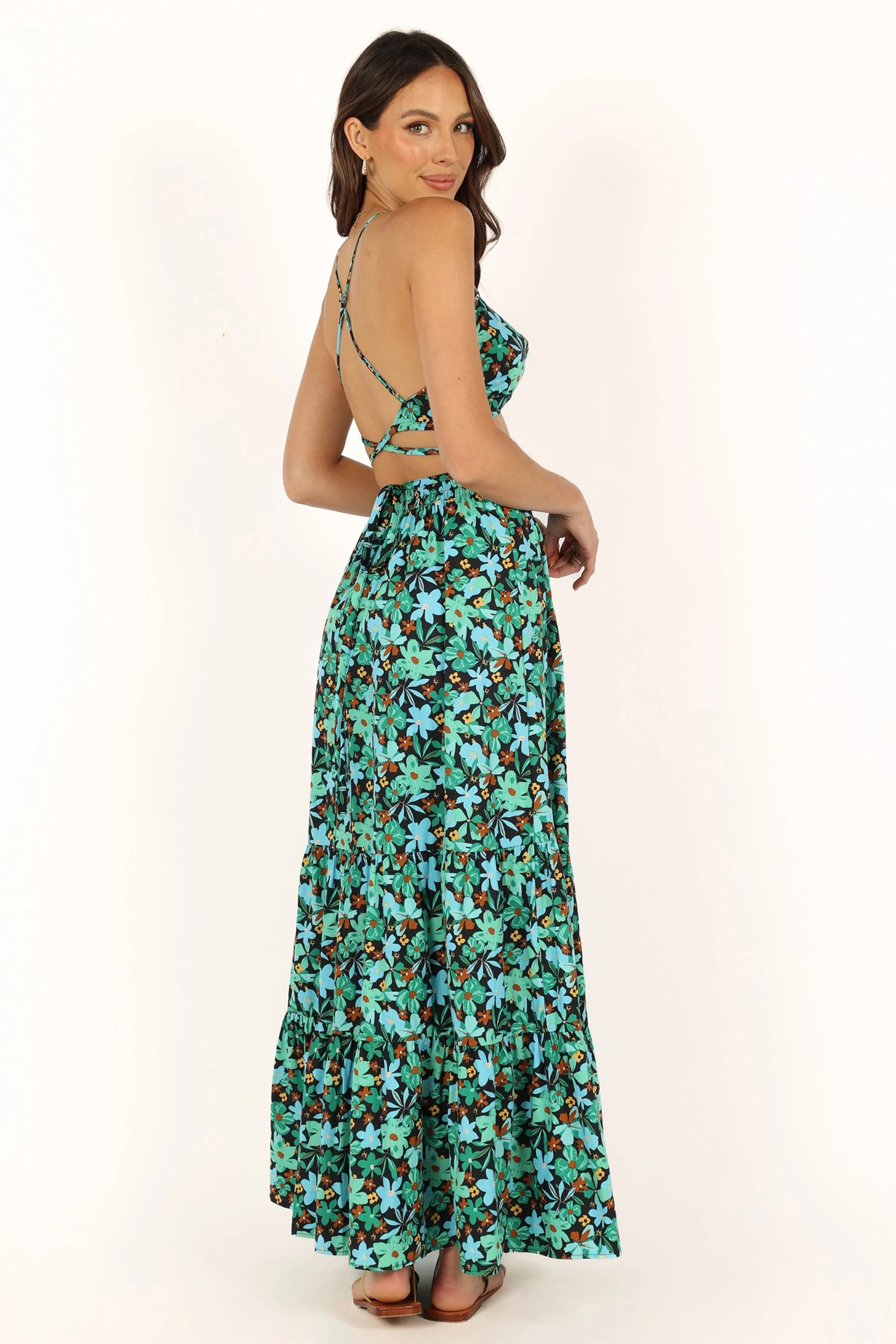 DETAILS Make a statement in this beautiful top and skirt set. The cropped length top with a floral print design is perfect for showing off your style, while the high waisted maxi skirt flatters your figure and adds a touch of sophistication to the look.