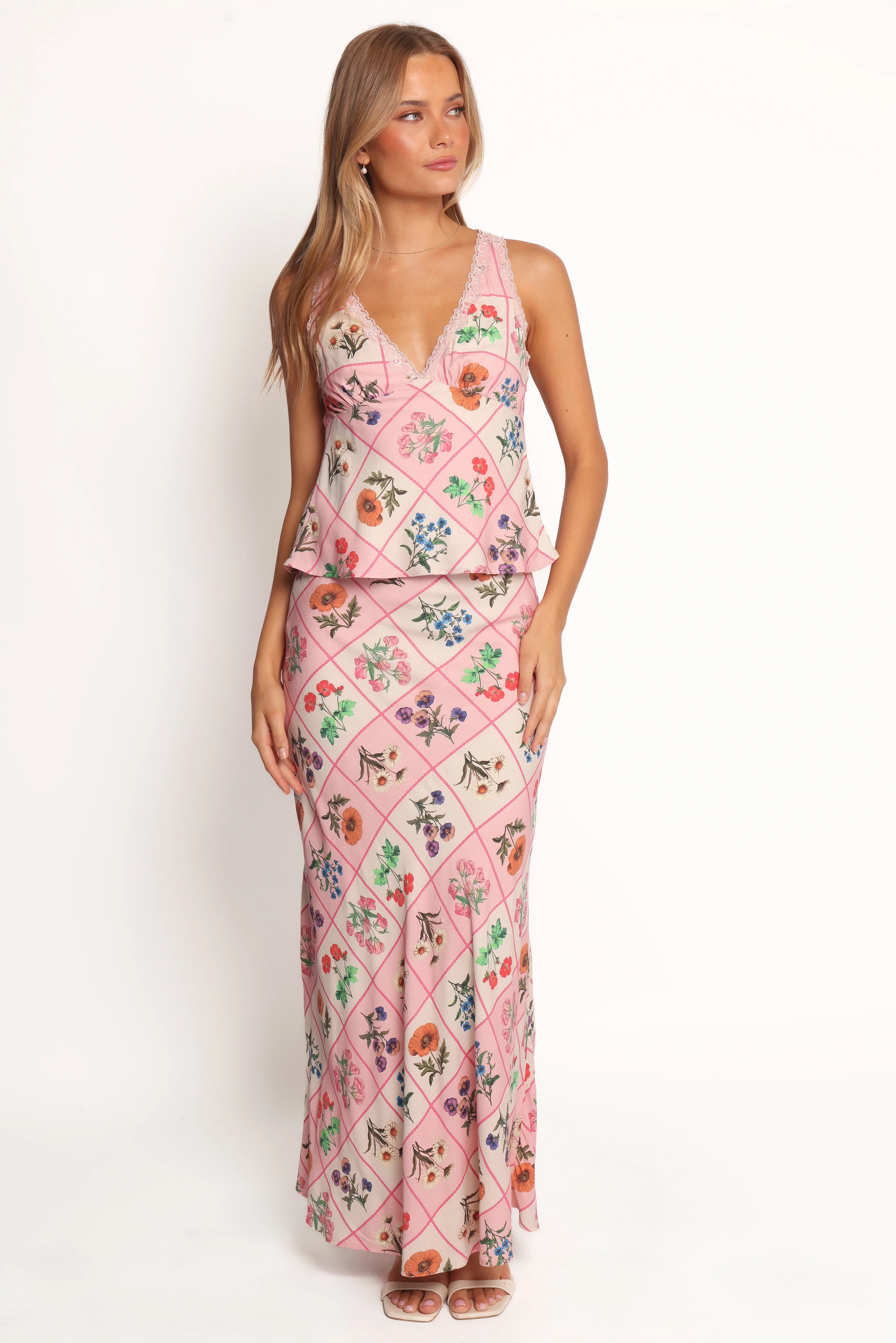 DETAILS Introducing the Kelso Top in floral, where vintage charm meets modern elegance. This gorgeous piece features a chic v-neckline complemented by thick shoulder straps, offering a perfect balance between style and support.