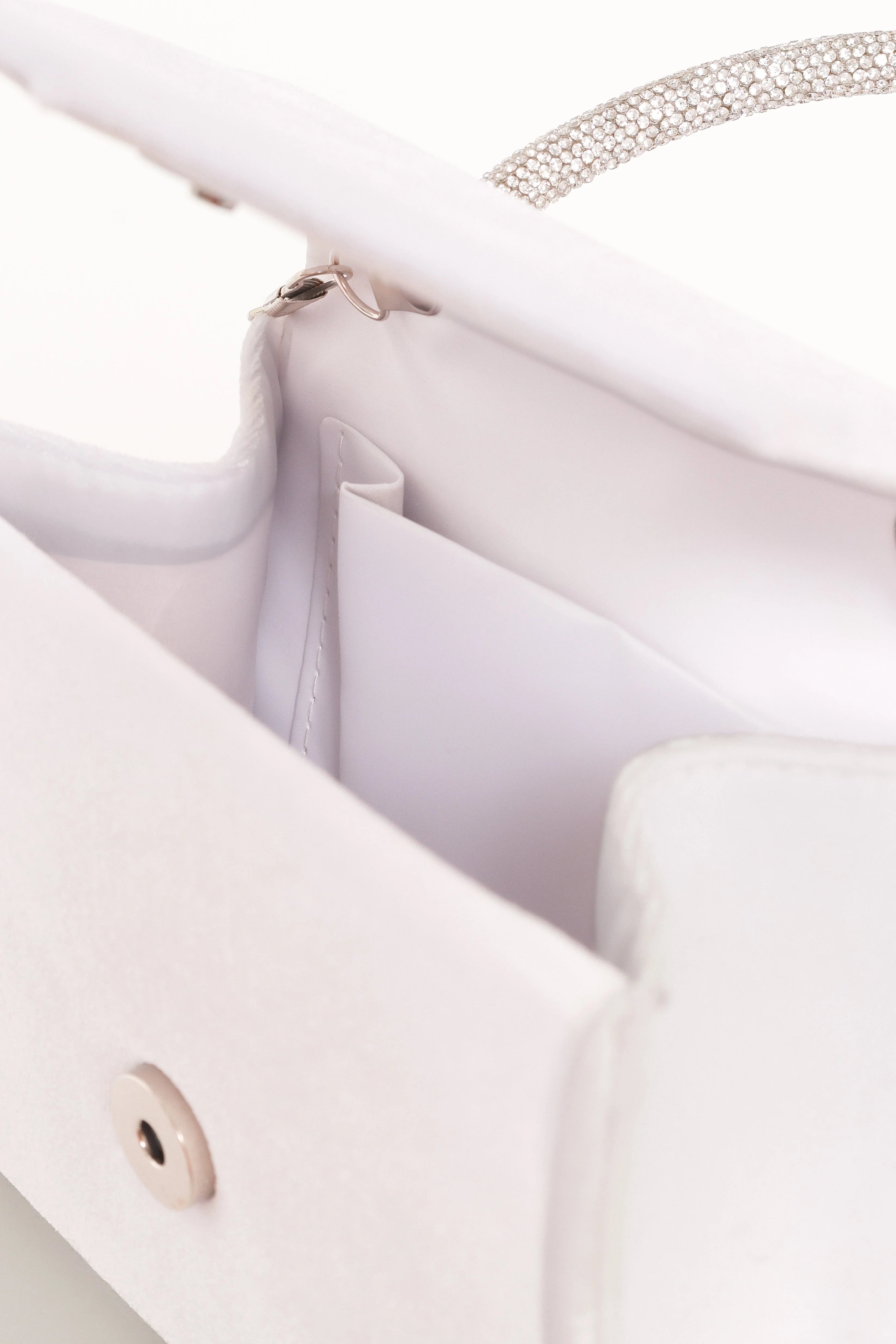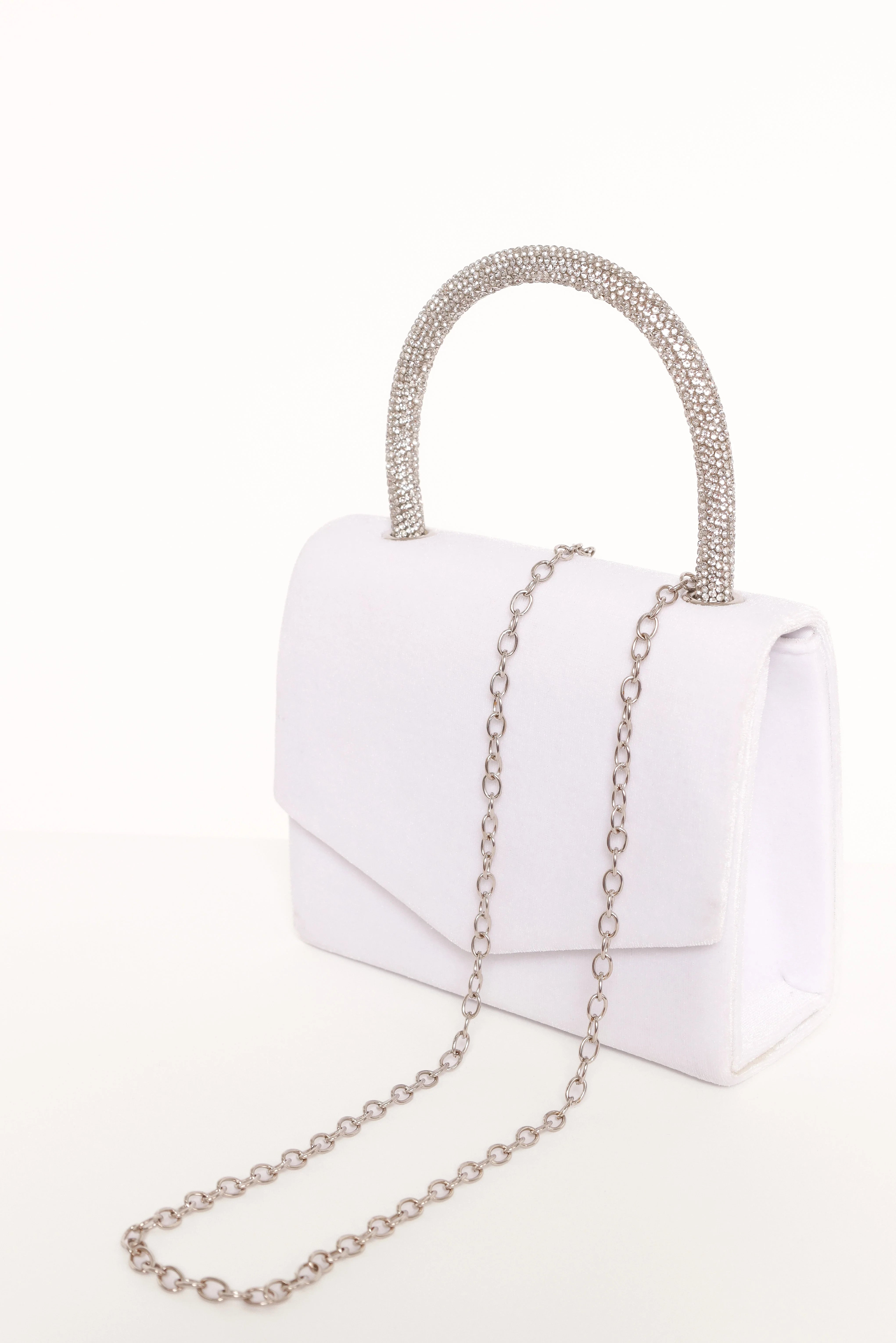 DETAILS This handbag features a dazzling rhinestone grab handle, adding a touch of glamour to your ensemble. Inside, you'll find an internal pocket designed to keep your essentials organized.