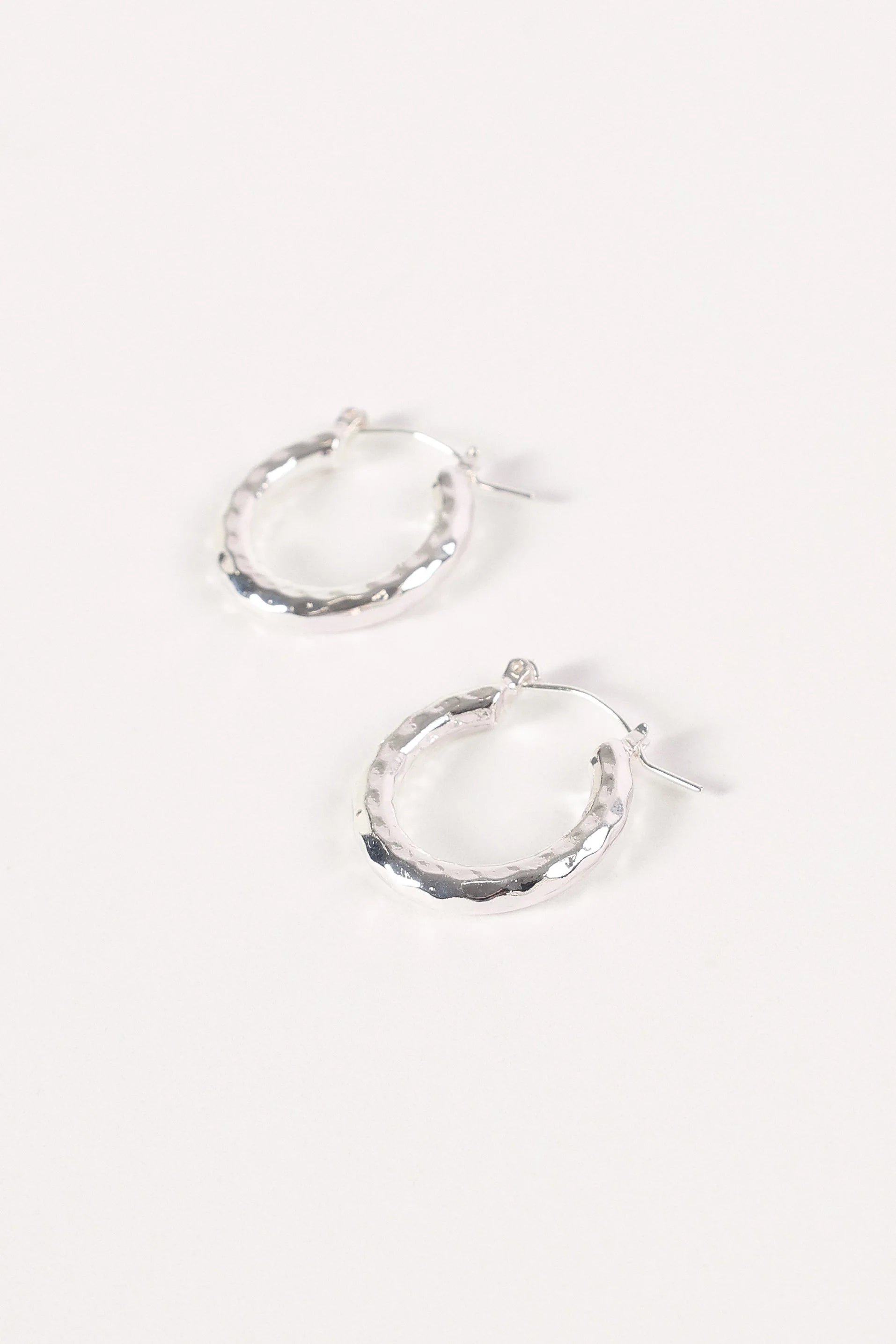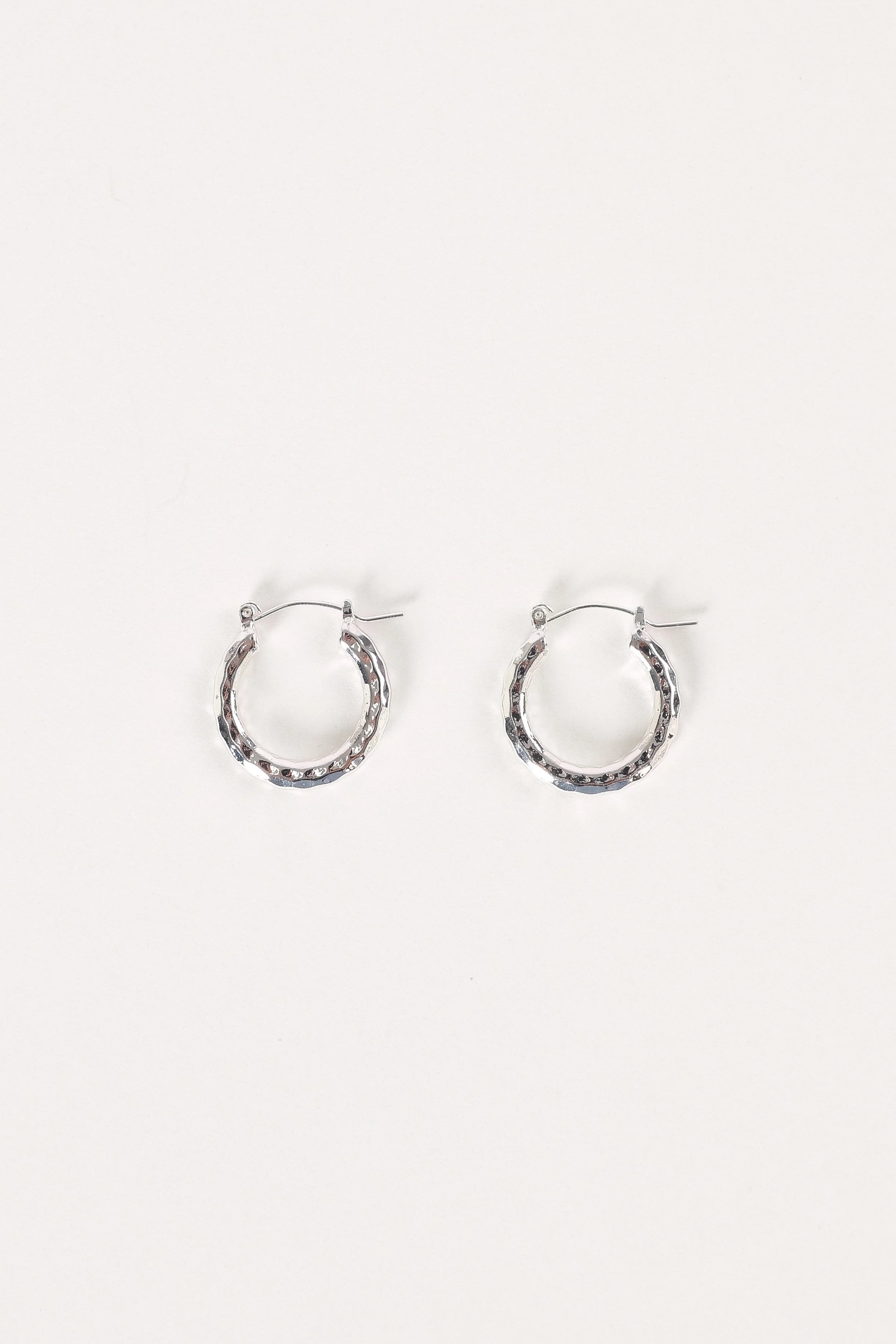 | DETAILS Looking for a classic and timeless accessory to elevate your everyday look? Look no further than our silver Hoop Design Earrings. With its textured surface and clasp closure back, you'll be sure to turn heads wherever you go!