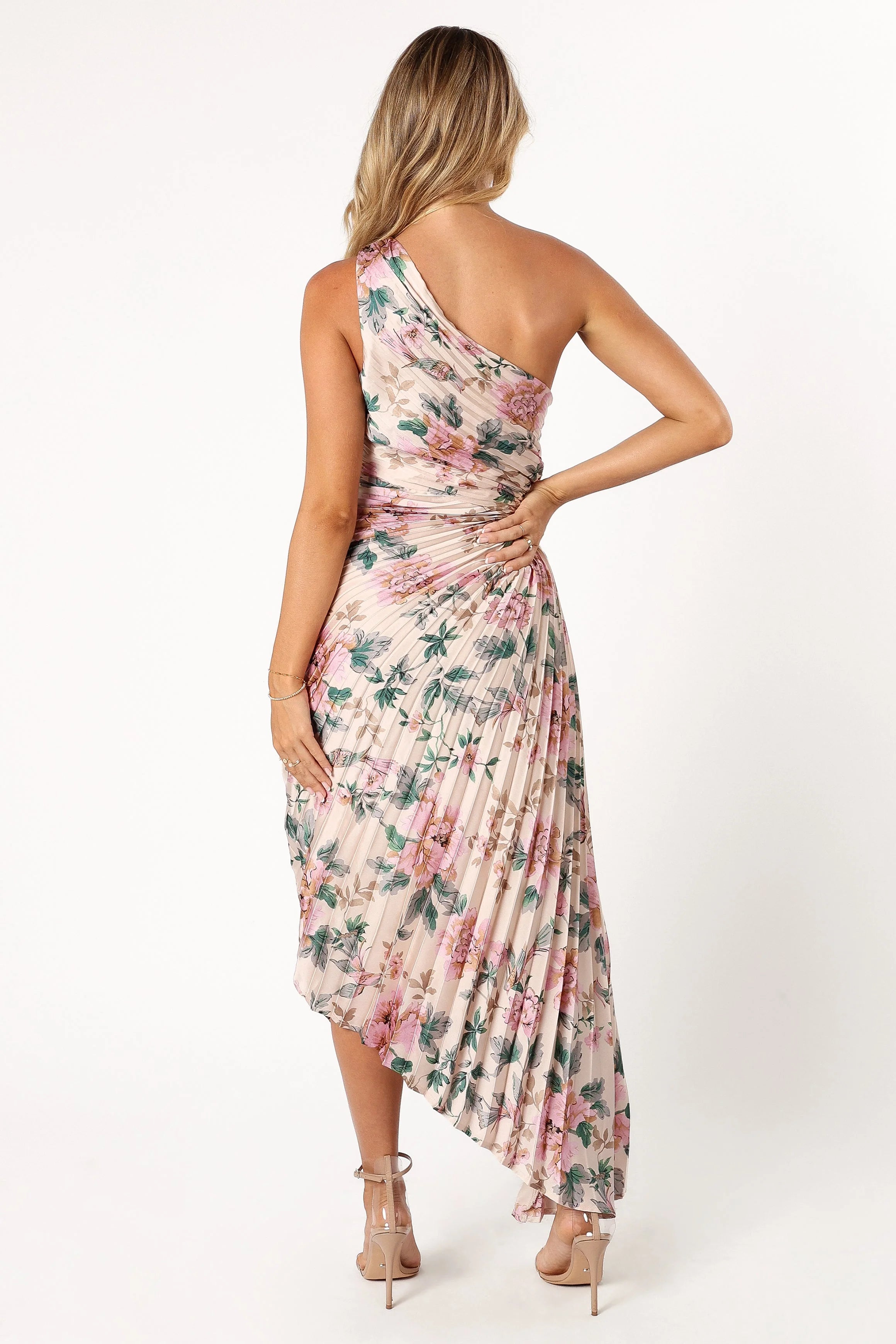 DETAILS If you're looking for a showstopping dress, the one shoulder midi dress is an absolute must-have! This stunning piece features beautiful pleated fabric detail and a side elasticised cutout feature. With this dress, you'll be sure to turn heads wherever you go.