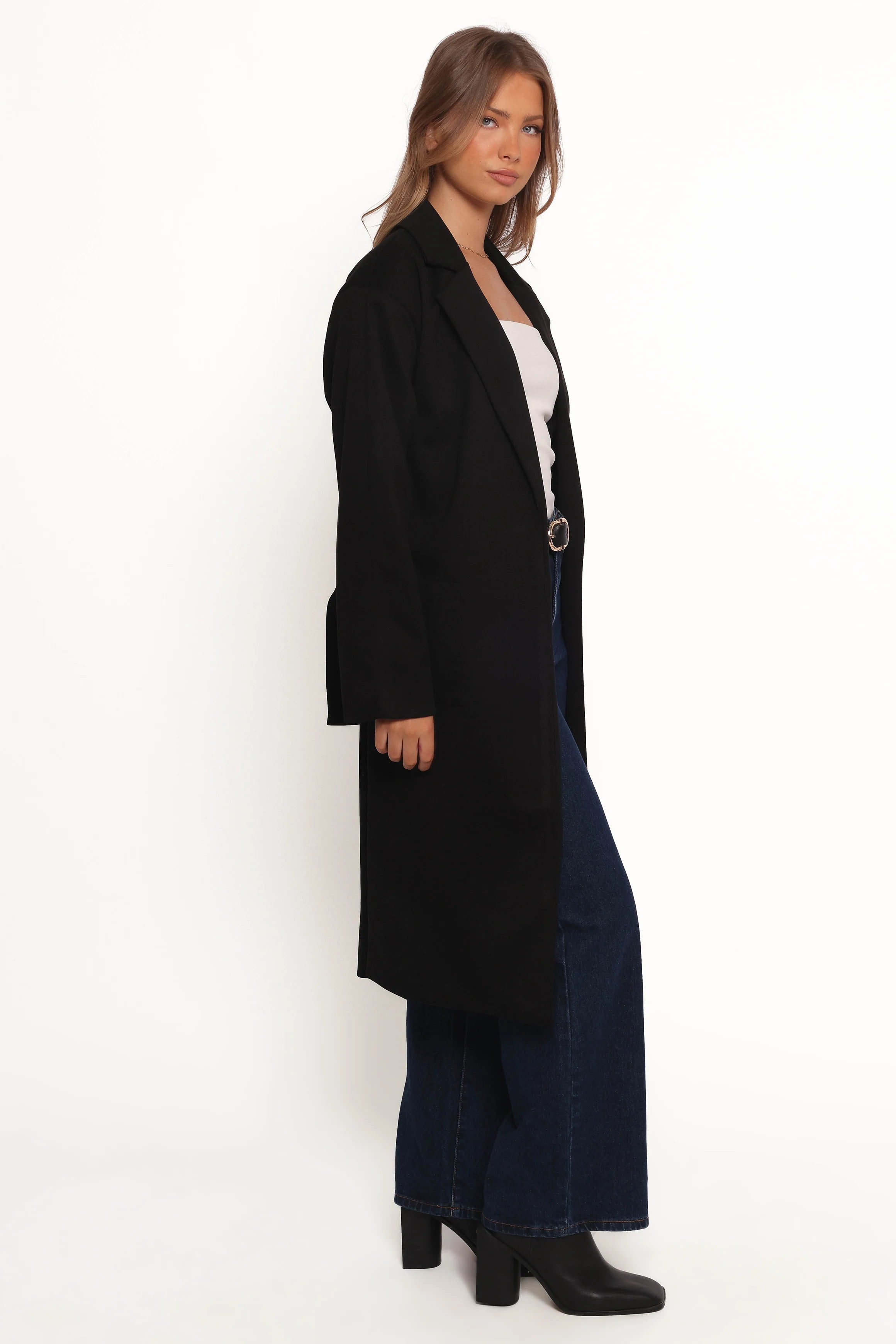 DETAILS This longline coat is the ultimate blend of sophistication and functionality, perfect for those who love a sleek and modern silhouette. The open front design and collared neckline create a classic frame that can easily transition from day to night.
