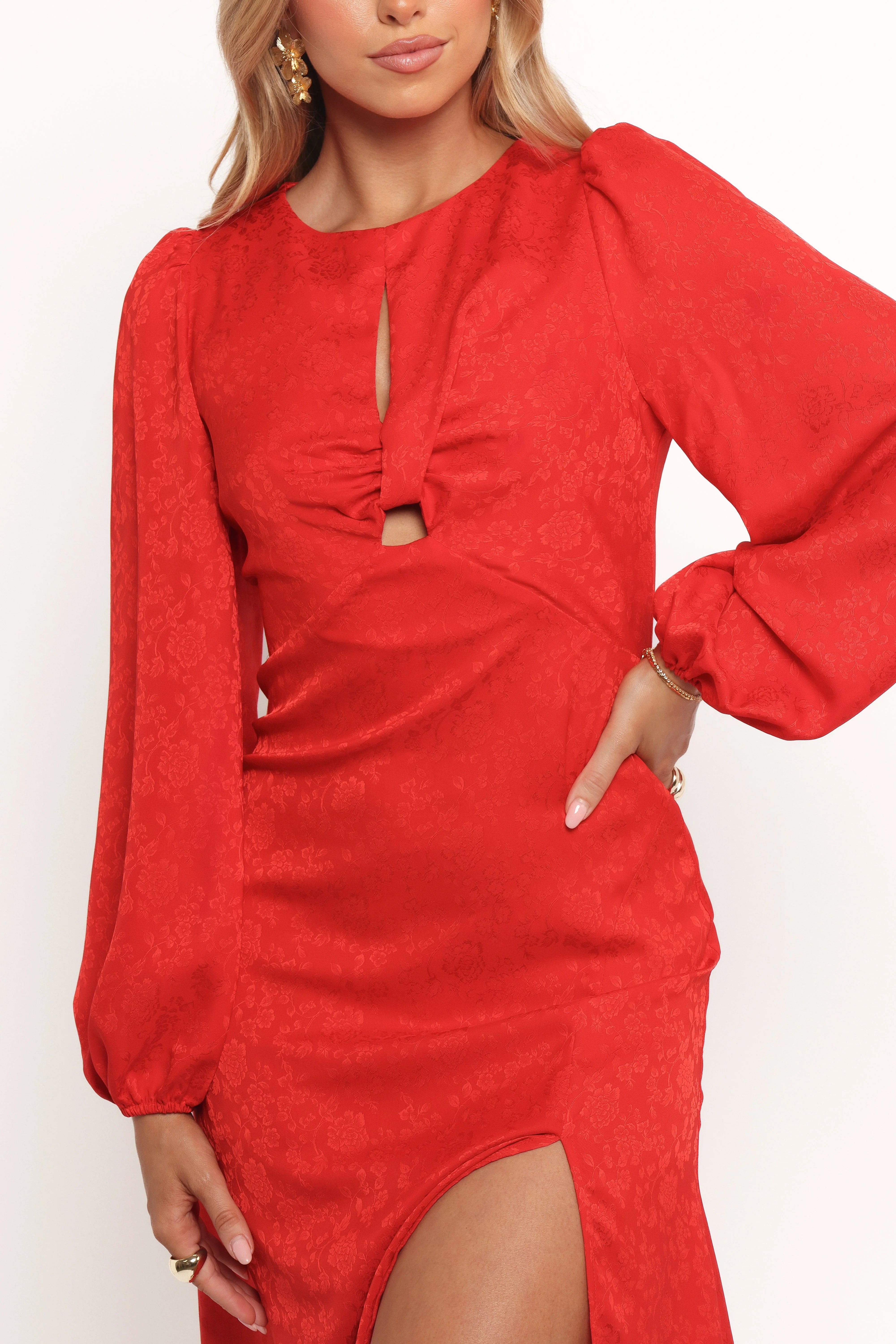 | DETAILS Elevate your ensemble with its elegant midi length and high neckline, offering a touch of sophistication to any occasion. The front twist cut-out feature adds a contemporary edge, seamlessly blending classic style with modern flair.