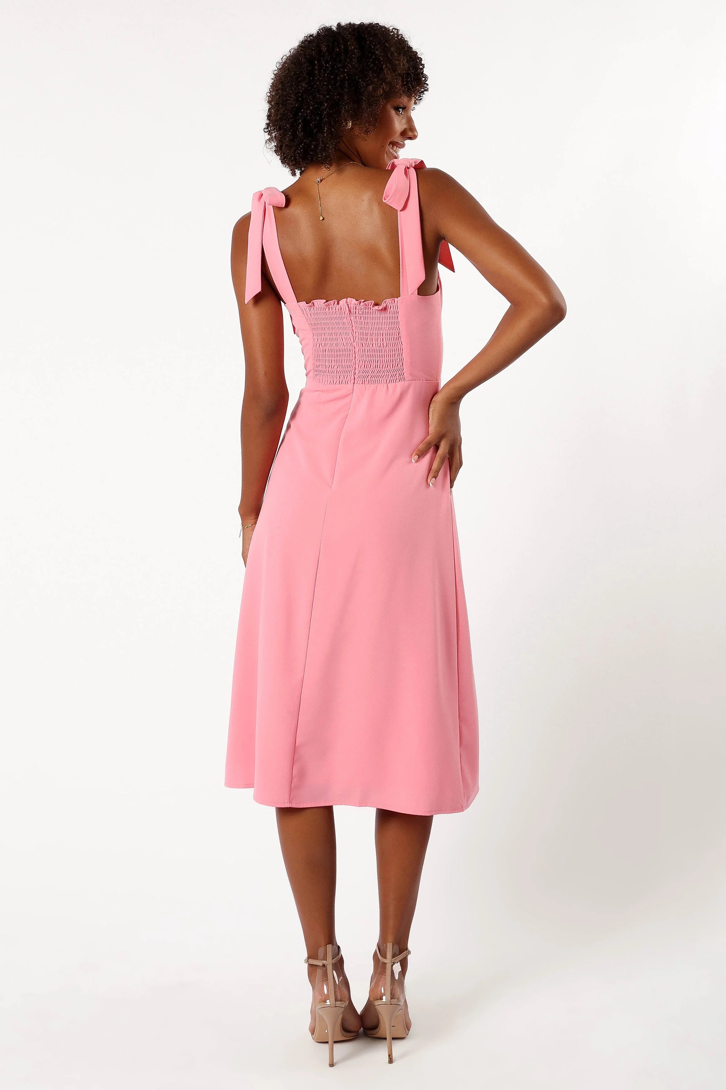 | DETAILS Say hello to your new go-to dress: the elegant and dressy Laurel dress. It features an elegant square neckline, tie close shoulder straps, elasticised shirred back panel for extra comfort and a back invisible zip for easy wear.