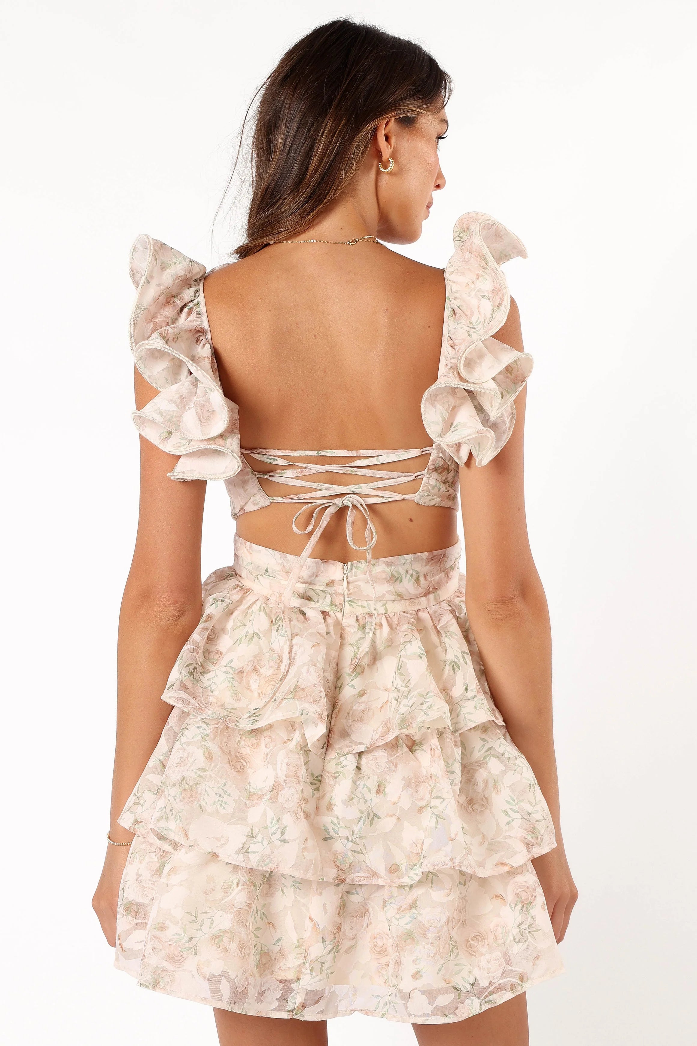 | DETAILS Step out in style with our stunning mini dress, featuring a deep v neckline and playful frilled straps. Complete with a tiered skirt and a charming cross-over back tie, this dress is your perfect pick for any occasion. An invisible back zip ensures a seamless look. Shop the ultimate statement piece now!