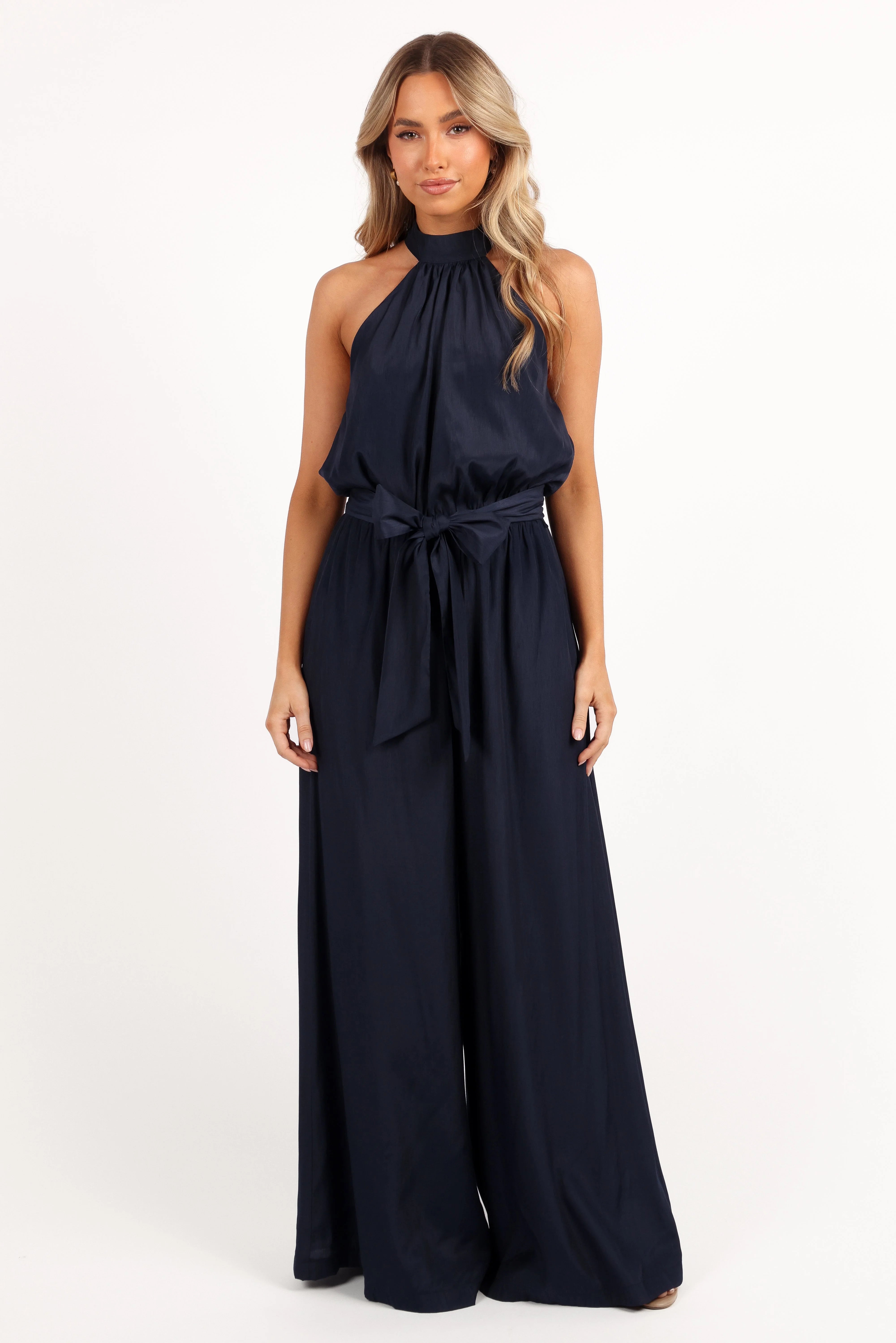 | DETAILS Step into effortless style with our wide-leg jumpsuit, designed to elevate your fashion game. The halter neckline with a tie-close design offers a chic and customizable fit, perfect for any occasion.