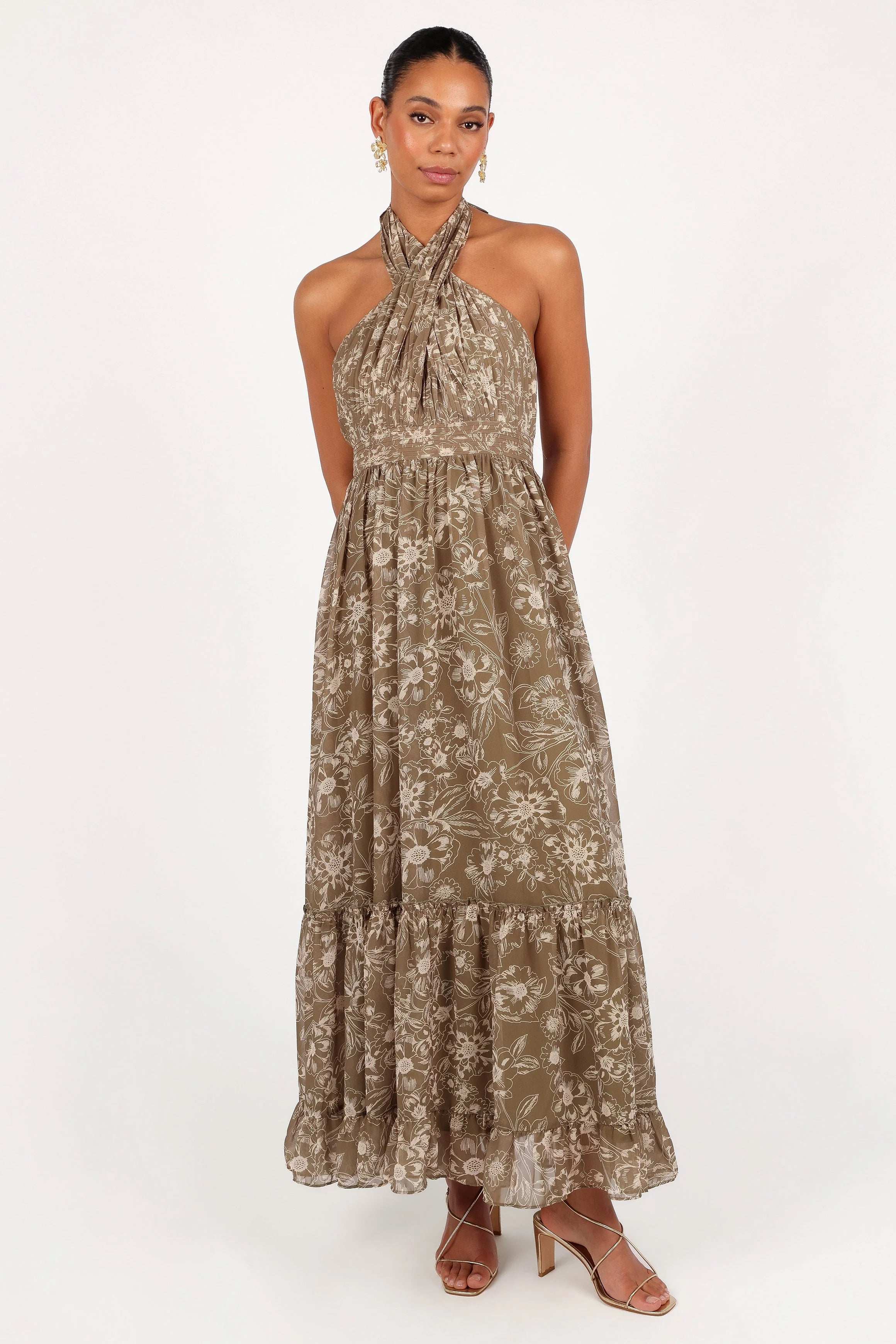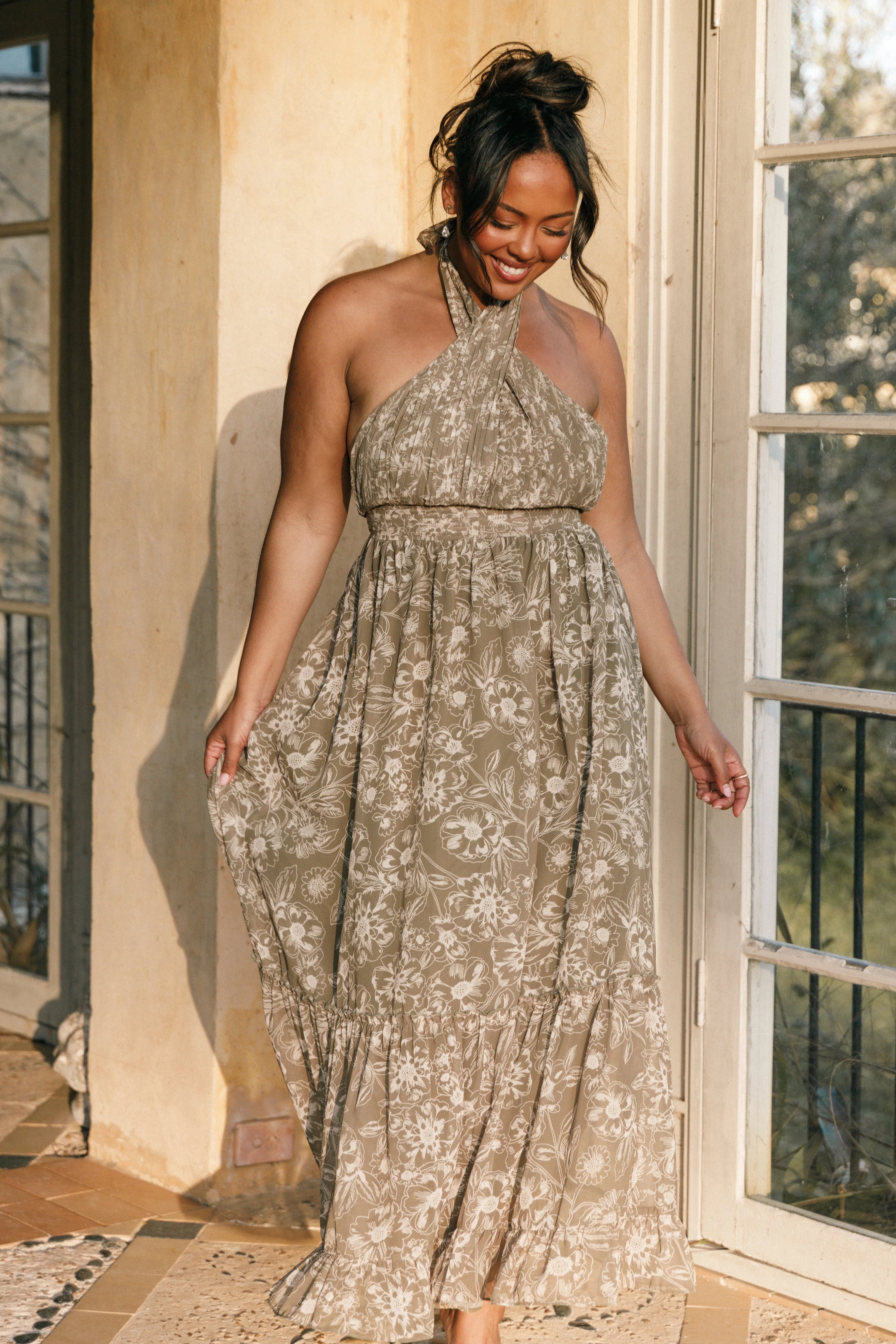 DETAILS Its halter neck, complete with a stylish tie close, gives a flirty nod to the latest trends. The detachable center flower adds an unexpected whimsical twist it's a conversation starter! But wait, there's more. Turn around to reveal a daring open back, adding that extra dose of sass to your style.