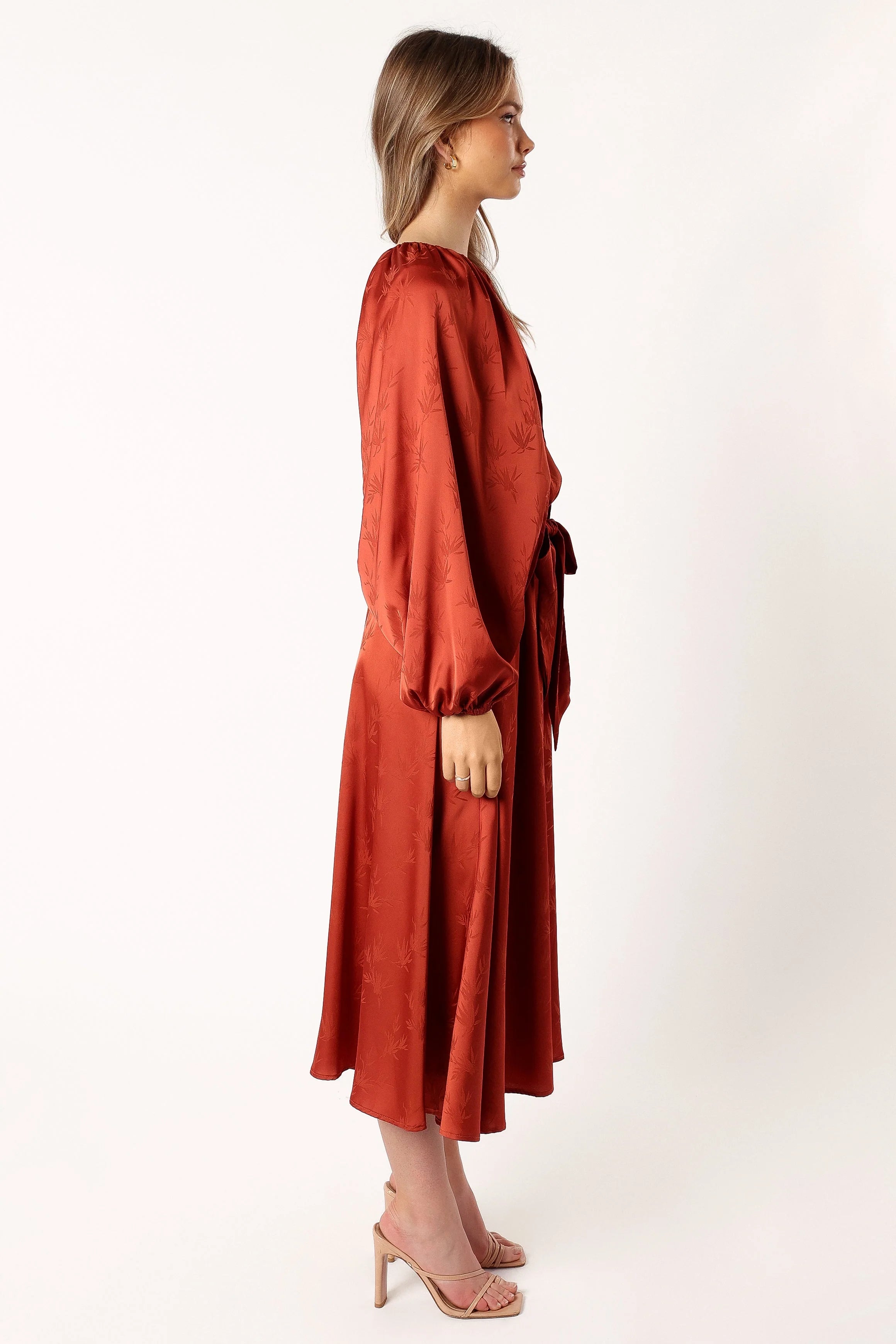 DETAILS This midi dress is the perfect piece for any event or occasion. Make a statement with its high round neckline and long sleeves, featuring an open sleeve design with elasticised cuffs. Whether you're off for an evening out, attending a wedding or just need something to wear on the weekend, this midi dress is sure to turn heads.
