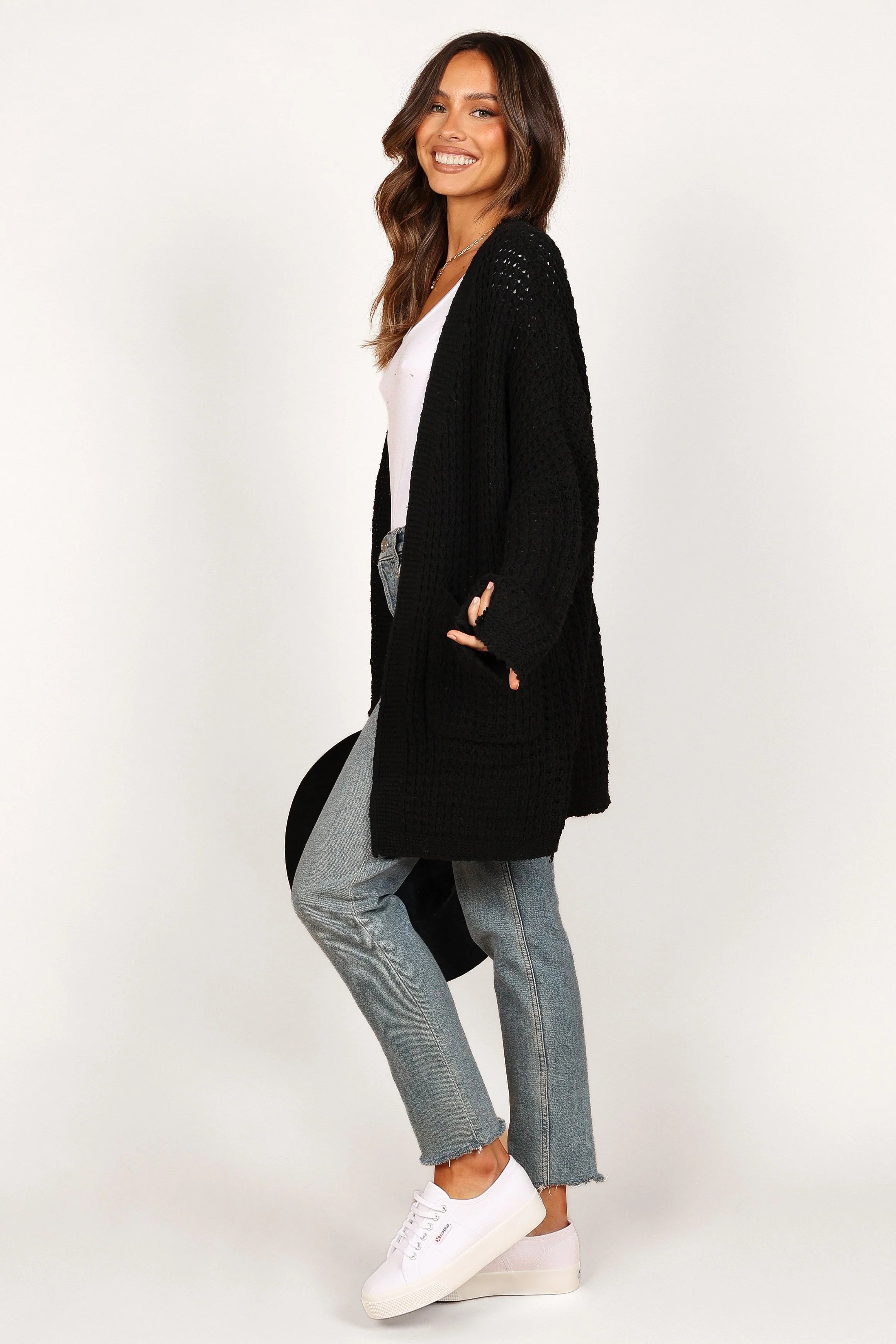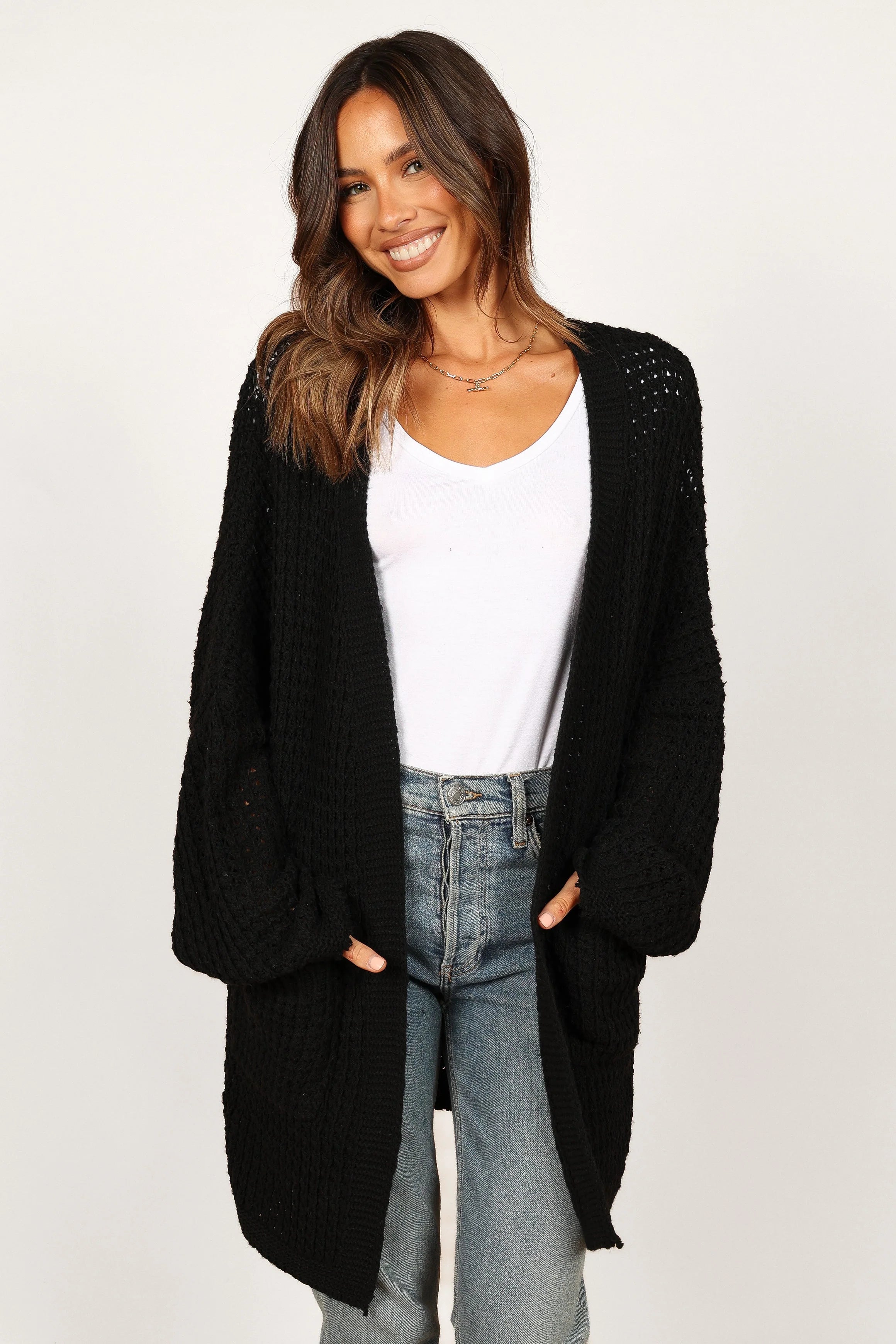 DETAILS This long line open front cardigan is the perfect piece for those days when you want to feel extra cozy. Its knitted design gives it a stylish edge, while the two front pockets make it practical.