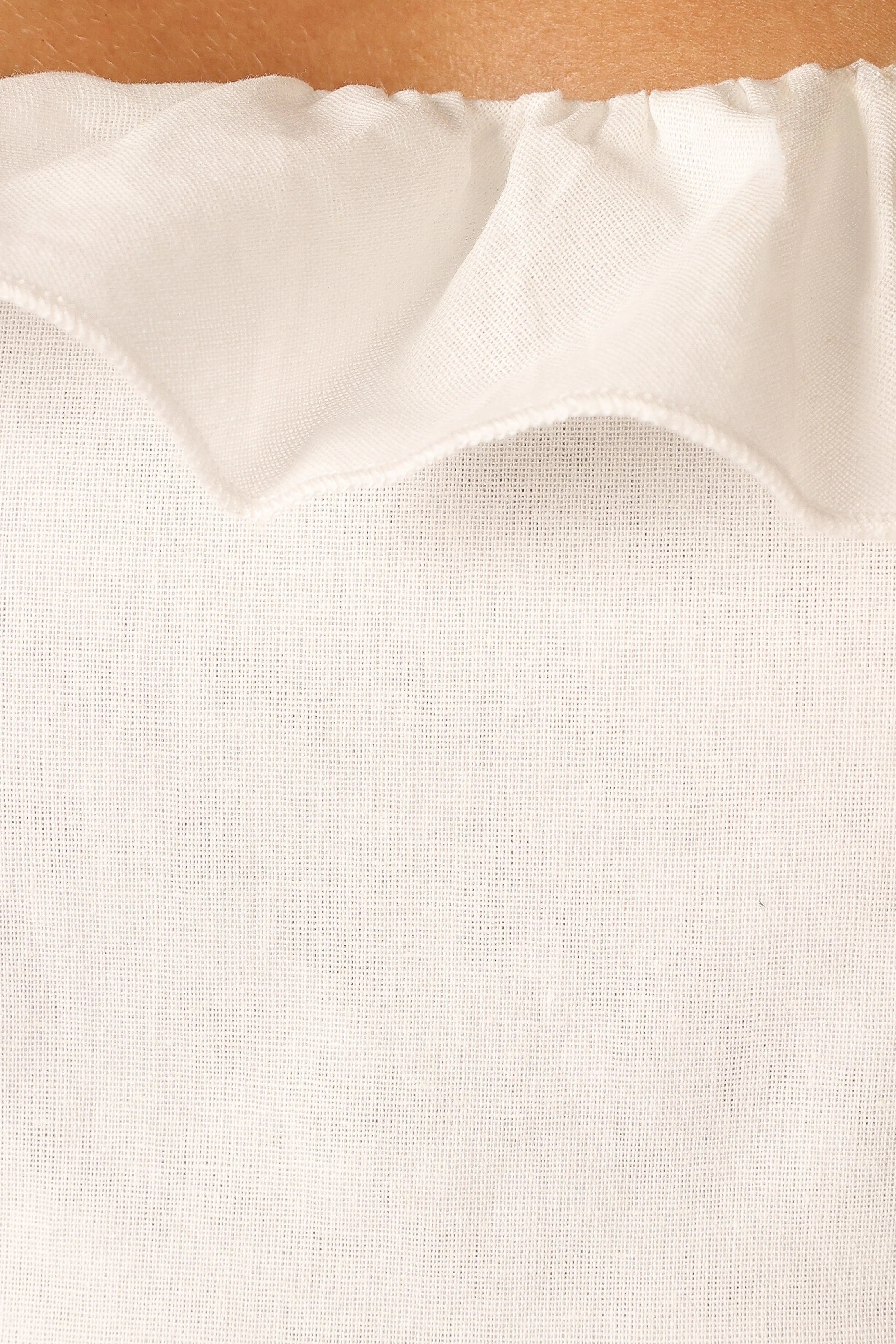 | DETAILS Carefully designed for those who appreciate fine details, the dress boasts a mini length, perfect for showcasing your strides with grace. The square neckline with delicate ruffle detail adds a touch of classic sophistication, while its non-adjustable straps ensure a clean look with a promise of comfort.