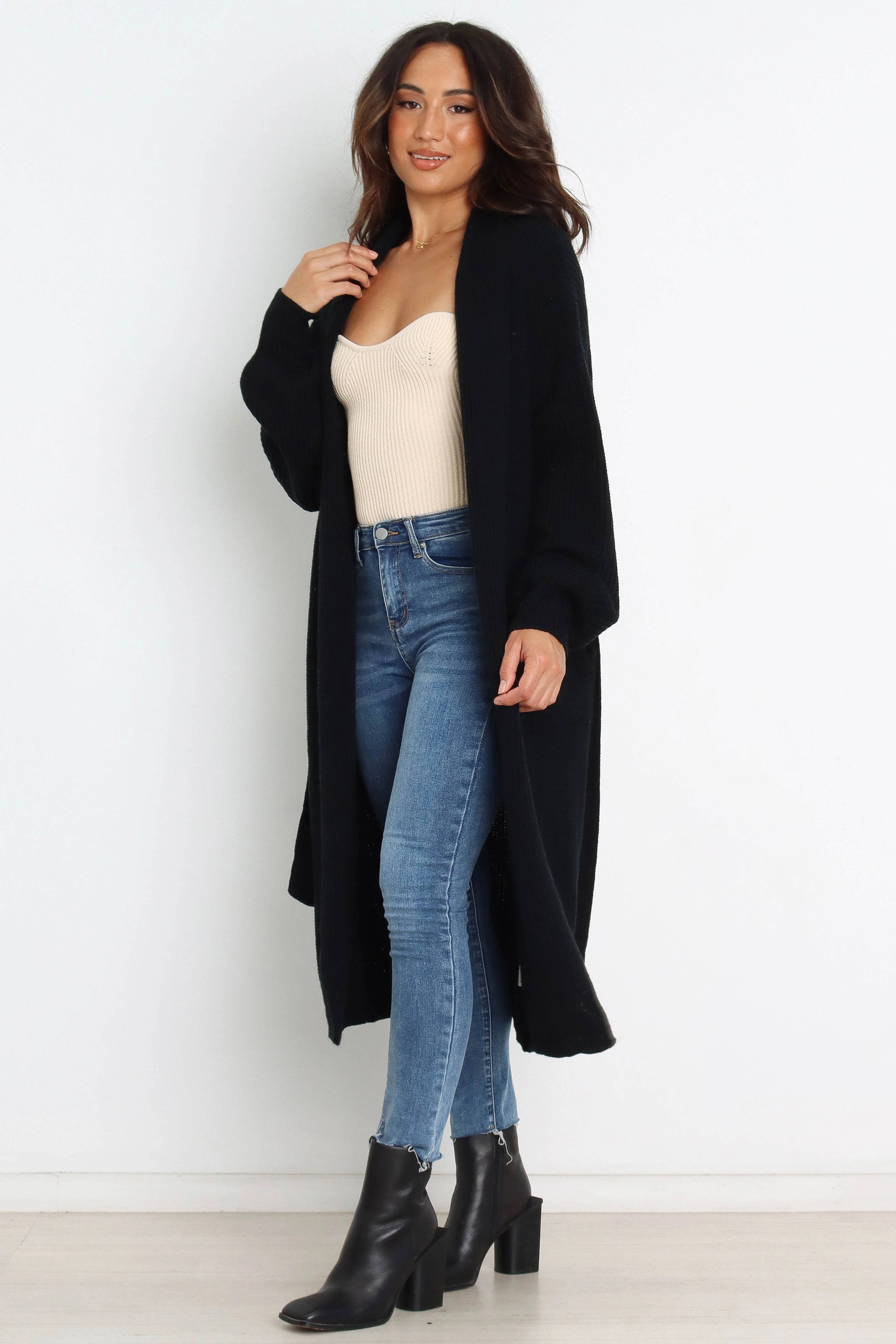 DETAILS Stay warm and cozy without sacrificing your style in this open front cardigan! Featuring a long lined silhouette, long sleeves with ribbed cuffs, and belt loops for an extra touch of detail, you'll be looking chic no matter the weather.
