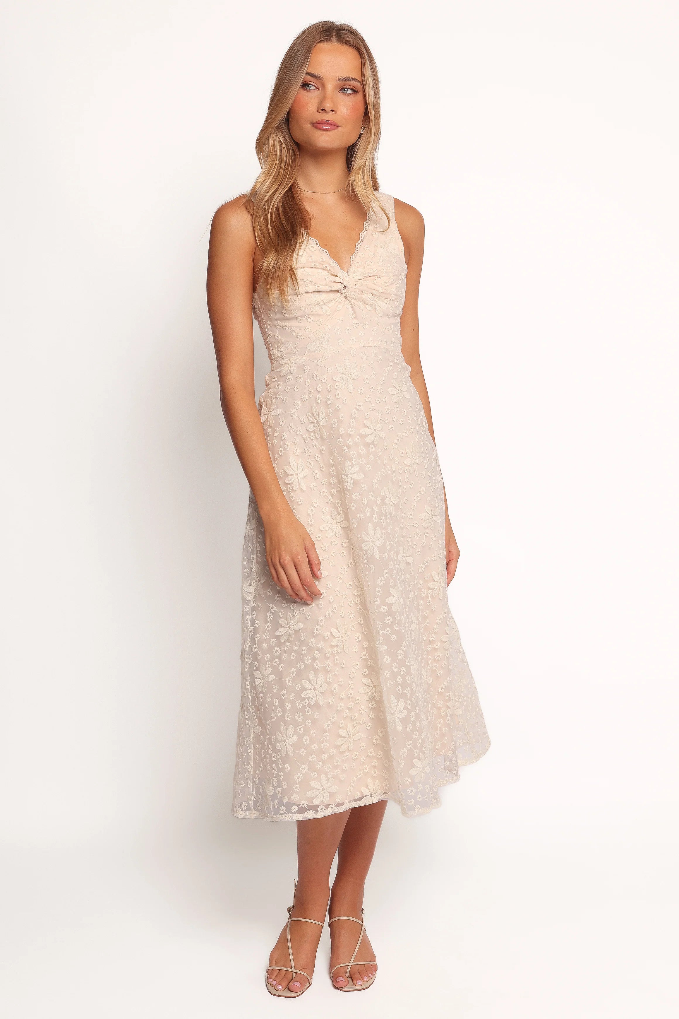 DETAILS Effortlessly elegant and endlessly versatile, the Louise Midi Dress in White is your new go-to for chic, understated style. Featuring a flattering midi length and a classic V neckline, it's designed to create a silhouette that feels as good as it looks.