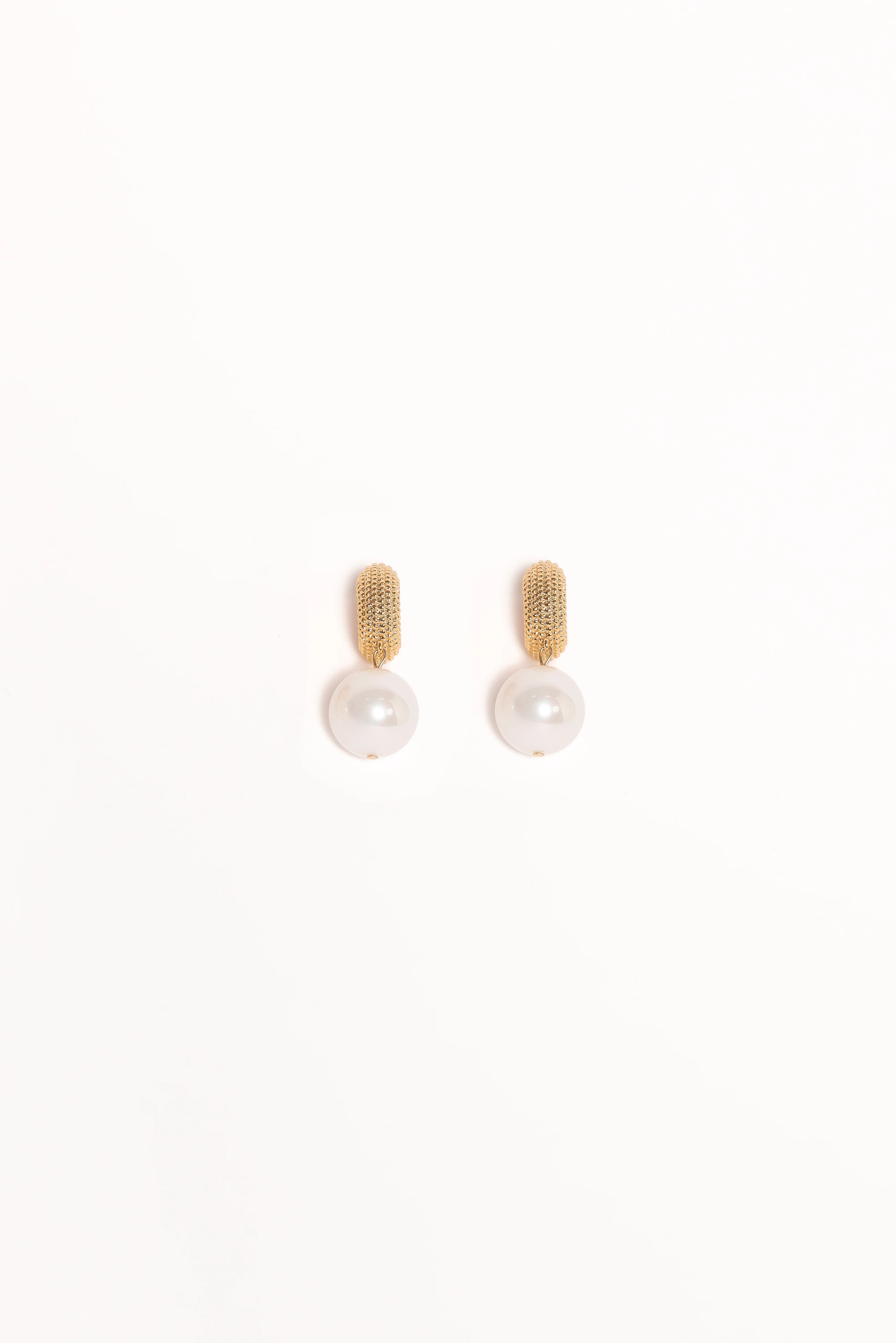 | DETAILS Elevate your accessorising game with the Luciana Earrings in Gold/Pearl, perfect for adding a touch of sophistication to any outfit. These drop-style hoop earrings feature a delicate faux pearl detail that exudes timeless elegance, while the sleek gold hardware brings in a modern edge.