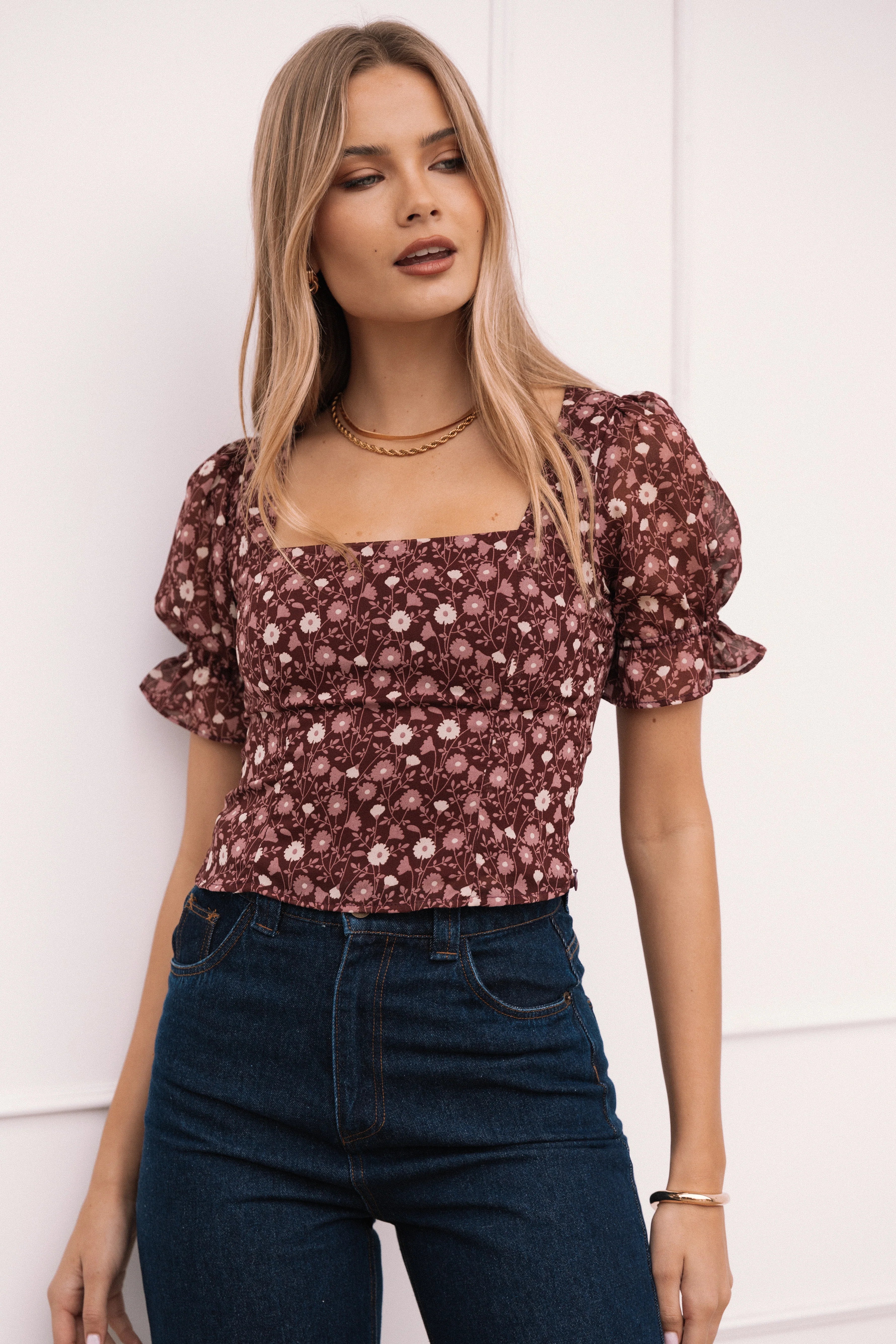 DETAILS Step into the season with our floral top, where elegance meets modern design. Imagine yourself in this chic piece, featuring a square neckline that beautifully frames your collarbone, adding a touch of sophistication to any look.