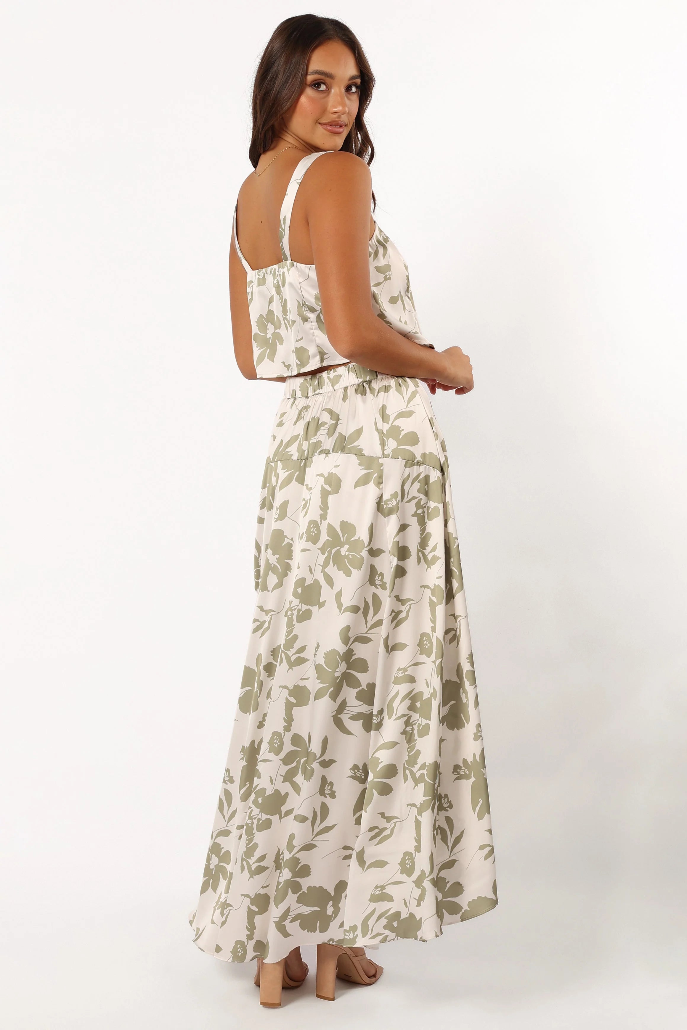 | DETAILS Feel your most confident and feminine in this stylish crop and skirt set. Featuring a cropped length top with non adjustable straps, straight neckline, and side invisible zip for an easy fit. Complete the look with a high-low skirt featuring an elasticised waistband at back, side invisible zip, and oh-so stunning color block print.