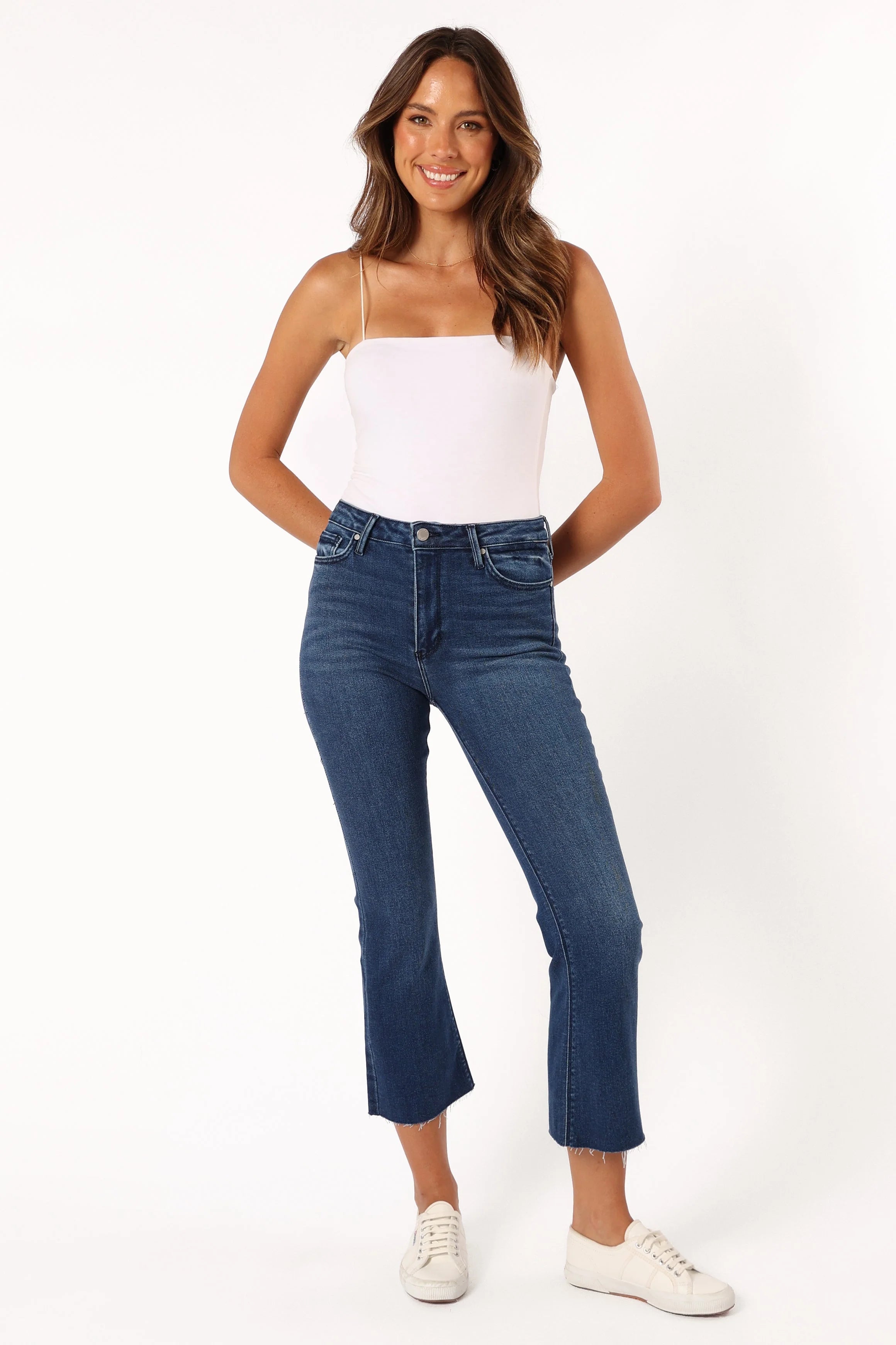 | DETAILS Tailored to flatter, these jeans feature a high-rise waist that accentuates your natural silhouette, coupled seamlessly with a stylish front fly zip and button closure. The inclusion of belt loops offers you the flexibility to accessorise with a belt or a classic minimalist option for a streamlined look.
