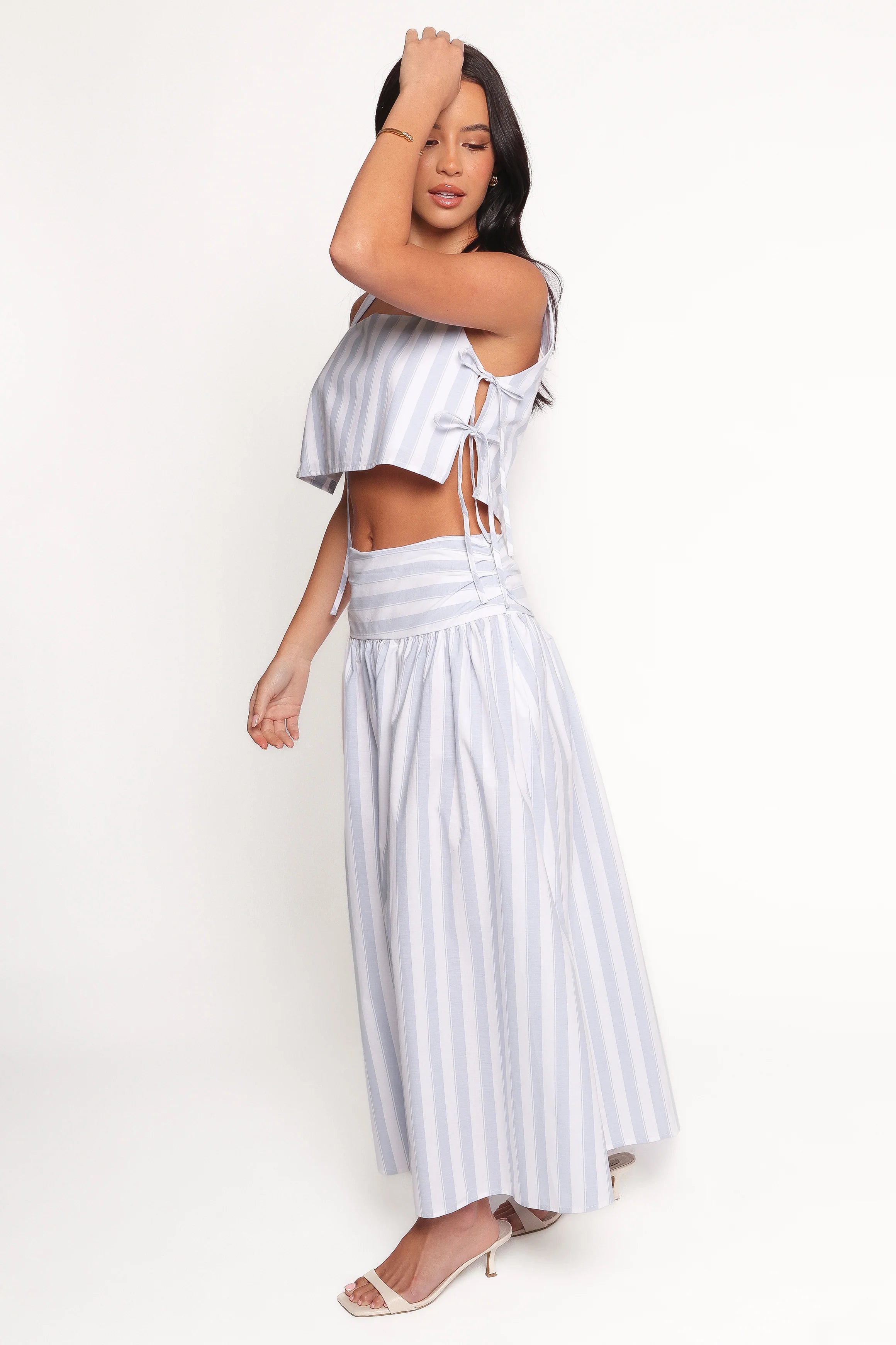 DETAILS Effortlessly chic and endlessly versatile, the Lyra Skirt Set in Light Blue is your new go-to for standout style. This matching top and skirt set features a cropped-length top with an elegant square neckline and open side details that tie perfectly for a playful yet refined look.