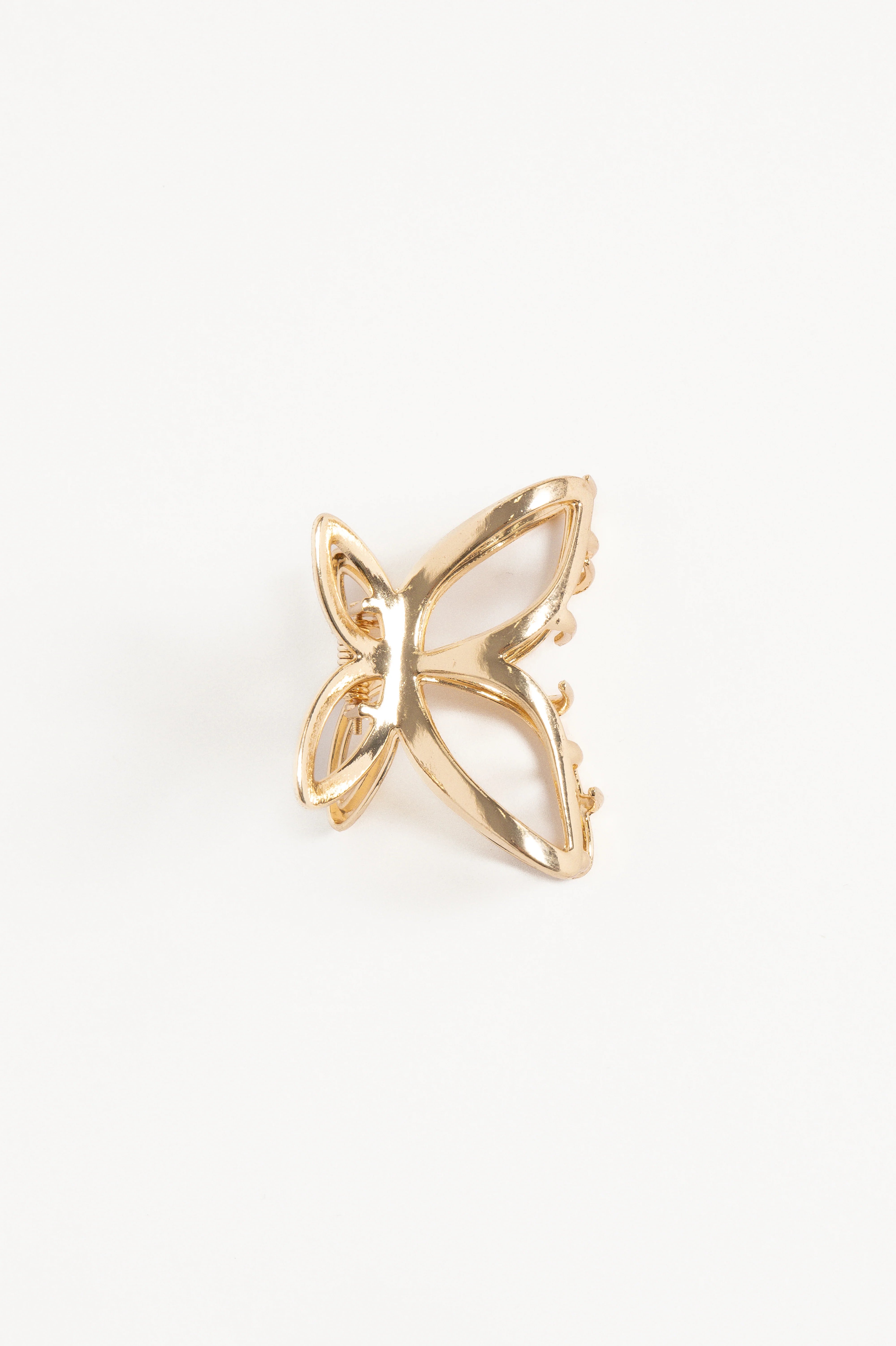 DETAILS Add a touch of whimsy to your hairstyle with the Mariposa Hair Clip in Gold. Designed in an elegant claw style, this butterfly-inspired clip effortlessly combines function with flair.