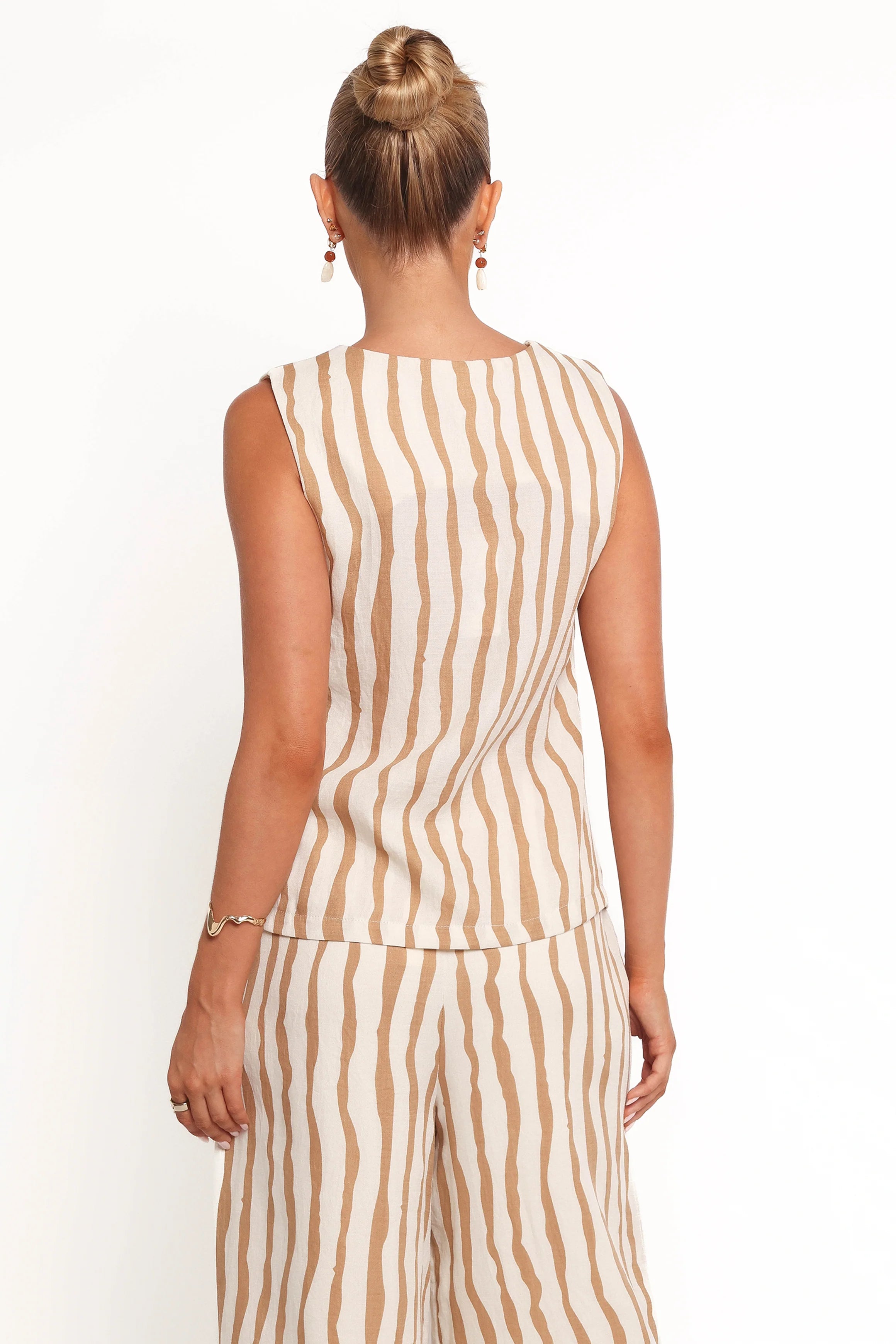 DETAILS With its chic V-neckline and breezy sleeveless design, this top is a go-to piece for sunny days and casual nights alike. The open front with tie-close detail adds a dash of charm while letting you customize your look, whether layered over a fitted tank or worn alone for a statement vibe.
