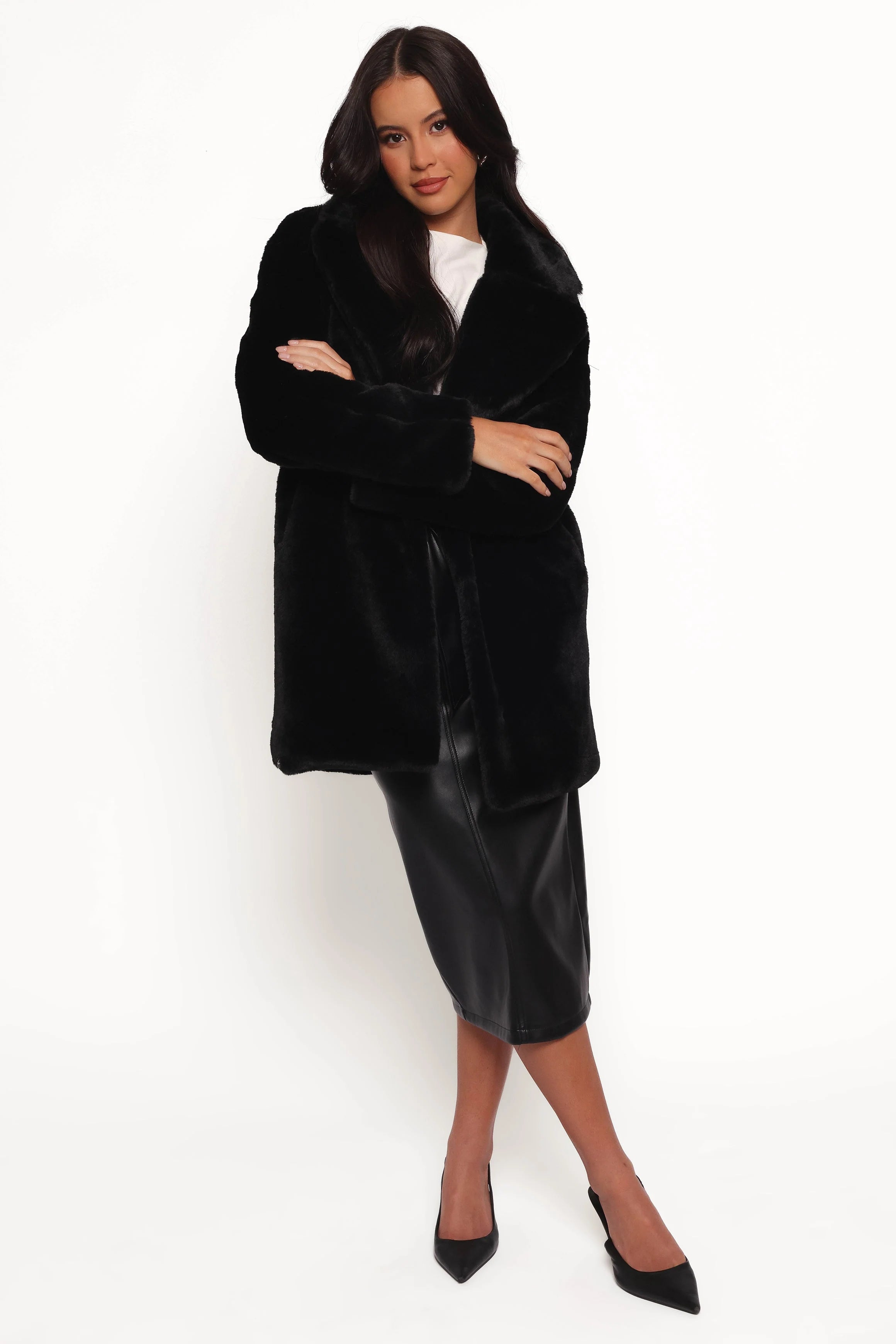 | DETAILS Wrap yourself in effortless style and cozy comfort with the Meeka Faux Fur Jacket. This long-lined coat, crafted from luxuriously soft faux fur, promises to be your go-to statement piece for chilly days. Its spread collar and long sleeves give a classic silhouette a modern twist, perfect for layering over your favourite outfits.