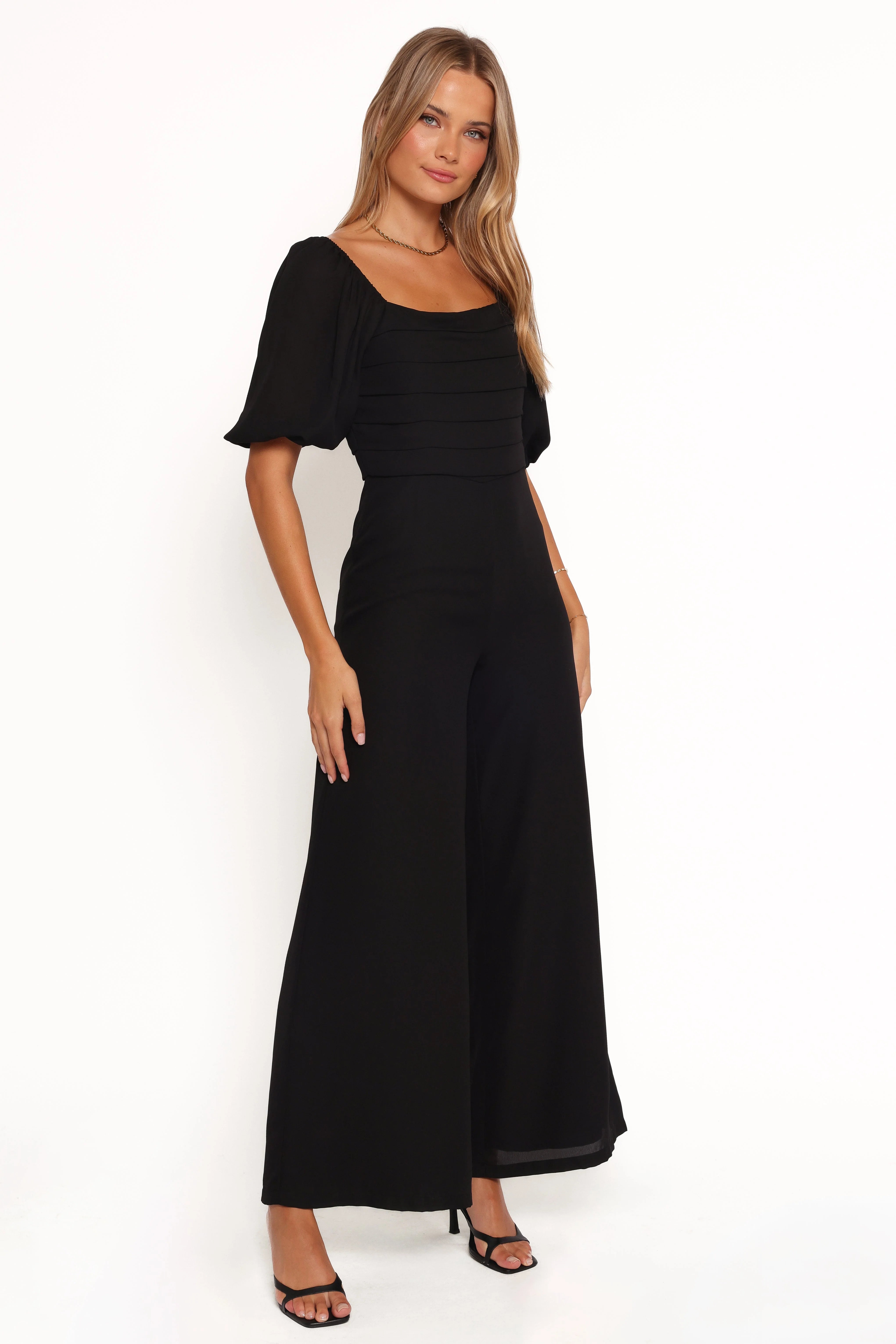 DETAILS Step into effortless elegance with the Mercer Jumpsuit in Black, the ultimate statement piece for any fashion-forward wardrobe. This chic jumpsuit features a sophisticated square neckline and mid length puff sleeves that bring a touch of drama to your look.