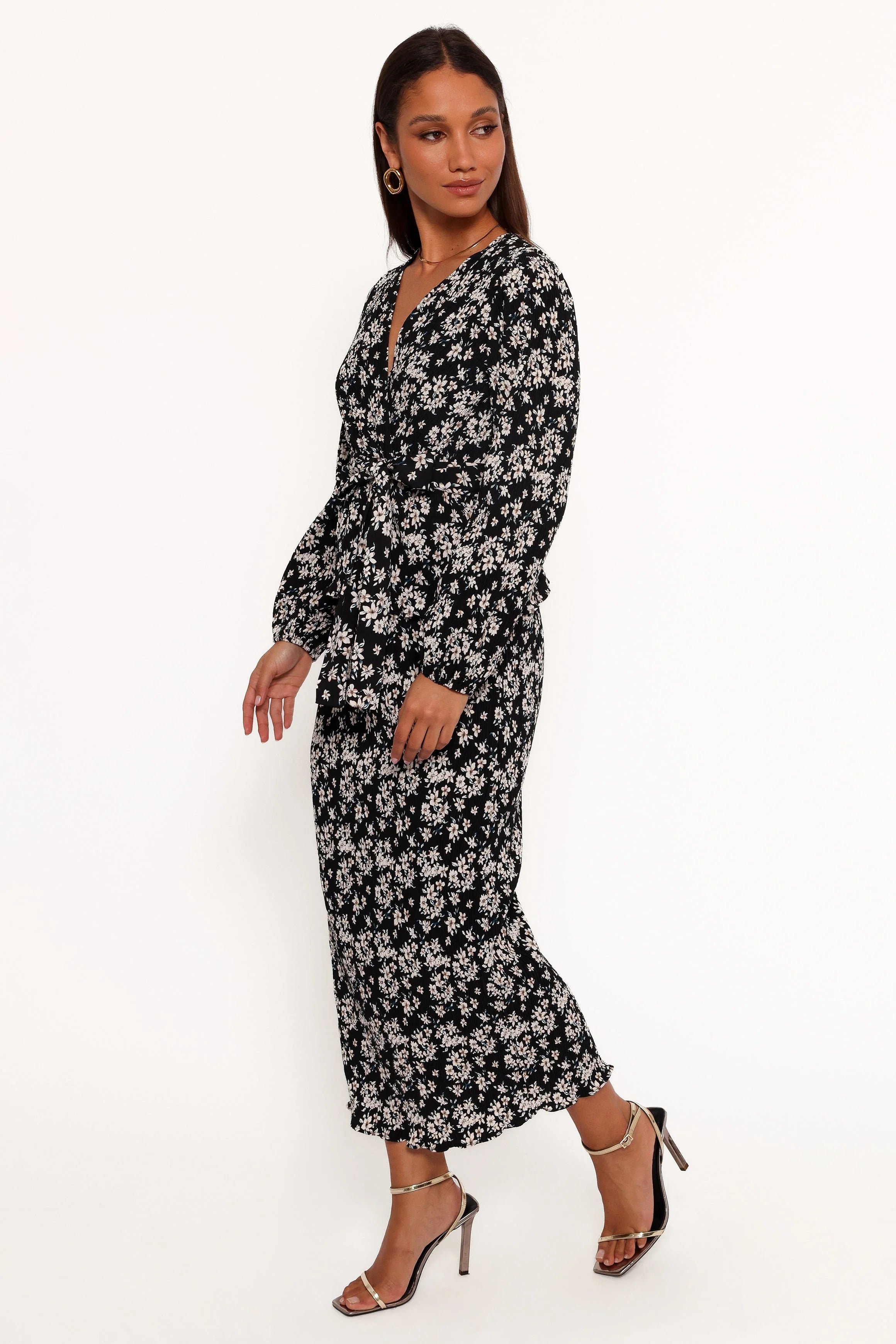 DETAILS This midi length skirt is perfect for all your wardrobe needs. It has an elasticised waistband, creating a flattering fit whatever the occasion. Crafted from plisse material with a fun floral print; this midi length skirt is versatile and ready to be dressed up or down!